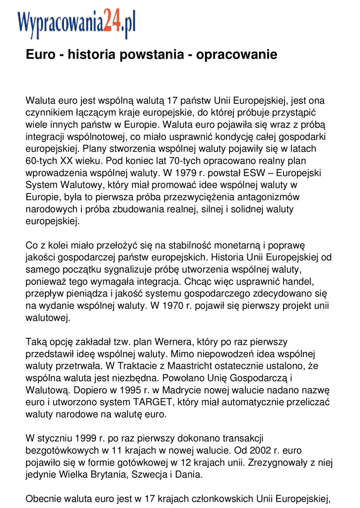Euro - historia powstania - opracowanie