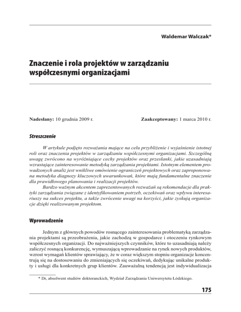 znaczenie i rola projektów w zarządzaniu współczesnymi