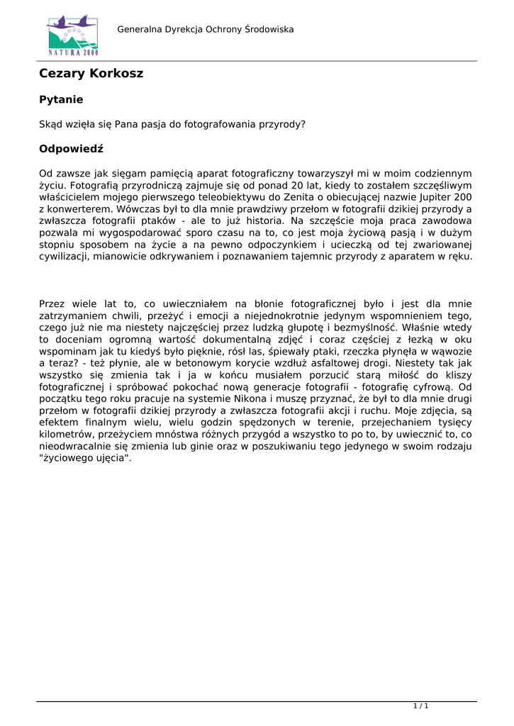 Cezary Korkosz - Natura 2000 - Generalna Dyrekcja Ochrony