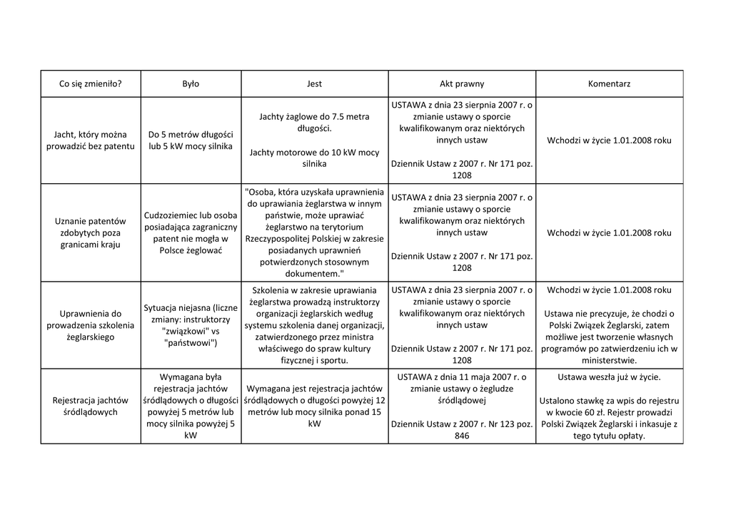Co się zmieniło? Było Jest Akt prawny Komentarz Jacht, który