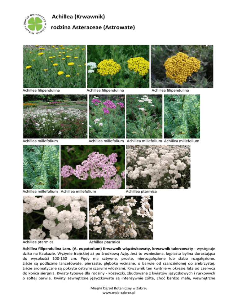 Achillea (Krwawnik) rodzina Asteraceae (Astrowate)
