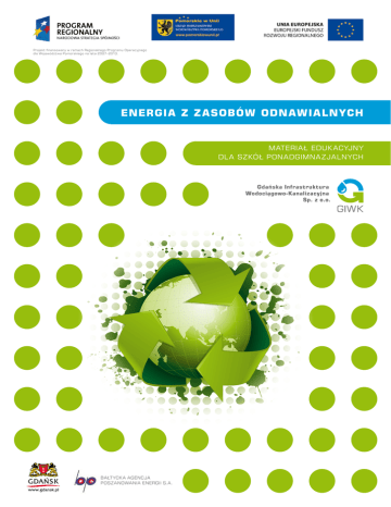 Projekt finansowany w ramach Regionalnego Programu Operacyjnego dla Województwa Pomorskiego na lata 2007–2013. Energia z zasobów odnawialnych Materiał eduk acyjny dl a szkół ponadgimnazjalnych BAŁTYCKA AGENCJA POSZANOWANIA ENERGII S.A. 3 Spis treści Energia z zasobów odnawialnych Wstęp 1. Energia elektryczna z wiatru 2. Energia z biomasy 3. Energia z biogazu 3.1. Biogaz rolniczy 3.2. Biogaz z oczyszczalni ścieków 3.3. Biogaz wysypiskowy 4. Energia promieniowania słonecznego 4.1. Kolektory słoneczne 4.2. Ogniwa fotowoltaiczne 5. Geotermia i pompy ciepła 6. Energia wodna 7. Biopaliwa transportowe 8. Załącznik – Użyteczne linki 4 Wstęp Jeszcze nigdy dotąd w historii świata nie następował tak szybki rozwój cywilizacyjny i związany z nim wzrost zapotrzebowania na energię. Potrzeby energetyczne pokrywane były dotąd głównie ze źródeł kopalnych, takich jak węgiel, gaz ziemny czy ropa naftowa. Dzisiaj w obliczu wyczerpywania się tych zasobów, jak też z uwagi na pogarszający się stan środowiska naturalnego stajemy przed wyzwaniem dalszego rozwoju technicznego i gospodarczego przy jednoczesnej konieczności podjęcia zdecydowanych działań na rzecz ochrony zasobów naturalnych i ograniczenia emisji gazów cieplarnianych. Szansę taką stwarza wykorzystanie potencjału energii z zasobów odnawialnych. Zjednoczone wysiłki Krajów Członkowskich Unii Europejskiej powinny doprowadzić do zmniejszenia zapotrzebowania na energię o 20%, ograniczenia emisji dwutlenku węgla o 20% oraz wzrostu udziału odnawialnych źródeł energii również o 20% do roku 2020. Działania prowadzące do osiągnięcia tych celów są powszechnie zwane „Pakietem energetyczno-klimatycznym 3 x 20”, który został zatwierdzony przez Parlament Europejski w grudniu 2008 roku. Państwa Członkowskie uzgodniły krajowe cele udziału odnawialnych źródeł energii, tak aby w efekcie sprostać zadaniu obniżenia emisji gazów cieplarnianych o 20%. Dla Polski cel ten wynosi 15% a na przykład dla Szwecji 49%, Łotwy 42%, Finlandii 38% czy Danii 30% . W Polsce Ustawa Prawo energetyczne definiuje odnawialne źródła energii jako - źródło wykorzystujące w procesie przetwarzania: energię wiatru, energię promieniowania słonecznego, energię geotermalną, energię fal, prądów i pływów morskich, energię spadku rzek energię pozyskiwaną z biomasy, energię biogazu wysypiskowego, a także energię biogazu powstałego w procesach odprowadzania lub oczyszczania ścieków albo rozkładu składowanych szczątek roślinnych i zwierzęcych. ogniwa słoneczne (elektryczność) Słońce kolektory słoneczne (ciepło) wiatr (elektryczność) parowanie / opady Księżyc energia wodna (elektryczność) fotosynteza (CO2 + H2O biomasa energia pływów (elektryczność) C m Hn O m + O 2 ) słoma, odpady rolnicze, odpady drzewne, leśne i przemysłowe, plantacje energetyczne, odpady komunalne, inne odpady organiczne gazyfikacjam spalanie fermentacja biopaliwa ciekłe (CmHnOm + O2 biogaz ciepło, elektryczność ciepło, elektryczność, biometan bioetanol, biodiesel CO2 + H2O) energia geotermalna rys. odnawialne źródło energii ciepło, elektryczność 5 Unia Europejska precyzuje swoją politykę poprzez uchwalanie dyrektyw, które następnie są transponowane do prawa krajowego przez Państwa Członkowskie. W obszarze energetyki dyrektywy mają na celu stworzenie warunków prawnych oraz kreowanie mechanizmów ekonomicznych sprzyjających rozwojowi sektora OZE oraz wspieranie działań na rzecz poprawy wykorzystania energii. Do najważniejszych należą: 1) Dyrektywa Parlamentu Europejskiego i Rady 2009/28/WE z dnia 23 kwietnia 2009r. w sprawie promowania stosowania energii ze źródeł odnawialnych, 2) Dyrektywa Parlamentu Europejskiego i Rady 2006/32/WE z dnia 5 kwietnia 2006r. w sprawie efektywności końcowego wykorzystania energii i usług energetycznych. Wdrażanie dyrektyw w naszym kraju znalazło odbicie w powstaniu mechanizmu ekonomicznego, jakim jest system kolorowych certyfikatów, czyli świadectw potwierdzających sposób wytworzenia energii, mających charakter zbywalnych praw majątkowych o określonej wartości rynkowej. I tak na rynku funkcjonują lub są w trakcie powstawania następujące świadectwa pochodzenia: zielone certyfikaty – dla energii elektrycznej ze źródeł odnawialnych czerwone certyfikaty – dla energii elektrycznej ze źródeł wytwarzających ciepło i energię elektryczną, czyli elektrociepłownie (tzw. kogeneracja) żółte – dla energii z małych źródeł kogeneracyjnych opalanych gazem lub o mocy elektrycznej poniżej 1 MW fioletowe – dla energii ze źródeł z gazu pochodzącego z odmetanowania kopalń lub biogazu pomarańczowe – dla źródeł energii z instalacji wychwytywania i zatłaczania dwutlenku węgla błękitne – z nowych wysokosprawnych źródeł energii białe – potwierdzające poprawę efektywności energetycznej skutkującą zmniejszeniem zużycia energii. Ceny kolorowych certyfikatów są oczywiście różne i są odbiciem sytuacji na rynkach wytwórcy i konsumenta energii. Prawo krajowe1 na przedsiębiorstwa energetyczne nakłada obowiązek osiągnięcia określonego udziału energii elektrycznej ze źródeł odnawialnych w sprzedaży energii odbiorcom w poszczególnych latach lub uiszczenia opłaty zastępczej w przypadku nie wywiązania się z tego obowiązku. Udział ten powinien wynosić: w roku 2011 – 10,4% w roku 2012 – 10,4% w roku 2013 – 10,9% w roku 2014 – 11,4% w roku 2015 – 11,9% w roku 2016 – 12,4% w roku 2017 – 12,9%. Polityka energetyczna Polski do roku 2030 przewiduje, że najdynamiczniej będzie się rozwijać energetyka wiatrowa i słoneczna, także produkcja biogazu i biomasy. Rozwój instalacji OZE jest wspierany środkami finansowymi między innymi z programów europejskich takich jak Inteligentna Energia dla Europy – działania o charakterze promującym wiedzę, czy przygotowania przed