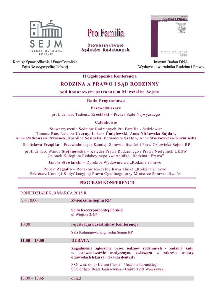 Powiększony program (pdf ) - Stowarzyszenie Sędziów Rodzinnych