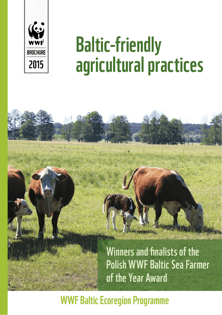 BROCHURE 2015 Baltic-friendly agricultural practices Winners and finalists of the Polish WWF Baltic Sea Farmer of the Year Award WWF Baltic Ecoregion Programme © WWF Poland DTP: Agencja EkoPress / 601 311 838 Editing and proofreading: Anna Sosnowska and Marta Kalinowska, WWF Poland Cover photo: © WWF Poland / A. Sosnowska BROCHURE 2015 Baltic-friendly agricultural practices Winners and finalists of the Polish WWF Baltic Sea Farmer of the Year Award AN AWARD FOR FARMERS, WHO CHANGE THE FACE OF AGRICULTURE Many farmers take innovative steps to reduce nutrient runoff from their farms to the Baltic Sea to achieve sustainable agriculture. By organising this Baltic Sea Farmer of the Year competition, WWF intends to emphasize how important these initiatives are and to promote these solutions throughout the region. Eutrophication, or over-fertilization of waters, is the biggest environmental problem of the Baltic Sea. Farmers find them selves often blamed for it, as their activity causes nearly half of the nitrogen and phosphorus runoff into the sea. However, as shown by the Baltic Sea Farmer of the Year competition, many farmers take active steps in order to reduce these emissions and are moving towards a more sustainable agriculture. © MR GROSZEK PRIVATE ARCHIVES The competition aims to raise awareness of good agricultural practices consistent with the principles of sustainable agri culture used in farms in the Baltic region. This competition is also meant to promote cooperation in the region in order to disseminate good practices in the agricultural sector. This booklet seeks to achieve the aforementioned objectives. We present therein agricultural practices used by the winners and commended by the national and international jury of the competitions of the following years; 2011, 2013, 2014 and 2015. Examples from Polish holdings show a wide spectrum of possibilities for applying eco-friendly practices. The methods showcased here can easily be replicated by farmers in the region and help them achieve a more sustainable agri culture, thus contributing to achieving a better environmental state of the Baltic Sea. 5 6 © WWF / K. TYMOREK Winners of the WWF Baltic Sea Farmer of the Year Award 2011-2014 7 © EDYTA GAJOS / WWF POLAND Marian Rak Regional winner of the overall 2011 Baltic Sea Farmer of the Year Award Location: Samotwór village near Wrocław (Lower Silesia Voivodeship*) Type of farm: Crop production: rye, barley, corn, rape, potatoes, orchards; maintaining perma nent grasslands and breeding Limousin cattle Marian Rak has run a family farm since 1975. At the beginning, he owned only 5 hectares of farmland. Today, his acreage is 102 hectares. He currently grows rye, barley, corn, rape, potatoes and breeds Limousin cattle. Marian has made outstanding achievements in regards to the implementation of environment ally friendly farming practices. He implements agri-environmental schemes in order to reduce nutrient losses using wide buffer strips, trees planted along the roads, streams and drainage ditches, inter- and undersown crops. * Region 8 Apart from reducing nutrient runoff, Marian Rak has made a great effort in the preservation and restoration of biodiversity on his farm. Among the measures he has taken to restore natural habitats and offer sufficient space for wildlife are, among others, the construction of artificial ponds and marshes, the plantation of midfield trees and shrubs, as well as installing nesting boxes for bats. Through his strong commitment to protecting the environment Marian Rak has showed that a progressive conventional farm can reduce the loss of nutrients while increasing biodiversity and protecting the landscape. Anna Stępień National winner of the overall 2013 Baltic Sea Farmer of the Year Award Location: Kiełpin (Kuyavian-Pomeranian Voivodeship) Type of farm: organic farm; pig production and crop production, among others: wheat, rye and vegetables (43 ha) The family farm was founded in 1938 by Anna’s grandparents and was later managed by her parents, the Wegners. They started their organic production with organic cultivation of wheat for export, and then extended the range to many other types of crops. At present, the farmer also breeds pigs using only and exclusively her own organic feeds. Anna uses many methods aimed at reducing emissions of nutrients from the farm. These methods include: use of crop rotation, nitrogen content monitoring and storage of manure in containers. The farm uses solar collectors to heat water in order to reduce emissions of greenhouse gases. The farmer also collaborates with many research institutions and invites to her holding trainees from vocational agri-culture secondary schools. All this is meant to help create and disseminate new methods of organic production and increase environmental awareness. © ANNA HADYŃSKA Moreover, in order to increase biodiversity on the farm, midfield ponds were established and trees as well as shrubs were planted along with installing nesting boxes for birds and bats. © ANNA HADYŃSKA Anna Stępień’s family farm is a pioneering holding in organic farming in Poland. It is one of the first farms whose owners began to adhere to organic farming methods. 9 Wiesław Gryn National winner of the overall 2014 Baltic Sea Farmer of the Year Award The cultivation technique allows to minimize fuel consumption, reduces workload and decreases the use of a variety of machines, and the entire cultivation is usually reduced to a single passage, during which the soil is cultivated, fertilized and seeds are sown. Mr. Gryn has cooperated now for many years with various scientific institutions, such as e.g. the Institute of Soil Science and Plant Cultiva tion in Puławy which monitors the water status at the farm and in its surroundings. The results have shown that nutrients do not leak from the farm to the surrounding waters. © WWF / K. TYMOREK Undersown clover is used as intercrop on the farm. There are als