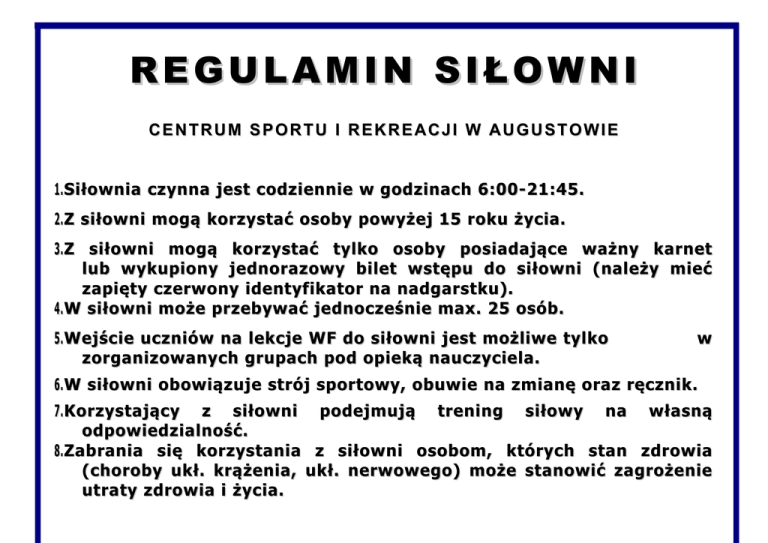 REGULAMIN SIŁOWNI