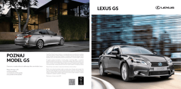 LEXUS GS POZNA MODEL GS Zapraszamy na jazdę próbną do najbliższego dilera samochodów Lexus. Więcej informacji o GS: www.lexus-polska.pl www.facebook.com/lexuspolska www.youtube.com/lexuspolska Toyota Motor Poland Company Limited sp. z o.o. zastrzega sobie prawo wprowadzenia bez uprzedzenia zmian danych zawartych w niniejszym katalogu, w tym parametrów technicznych, wyposażenia i specyfikacji pojazdów. Wszelkie informacje podane w katalogu, w szczególności zaprezentowane fotografie, wykresy, specyfikacje, opisy, rysunki lub parametry techniczne nie stanowią oferty w rozumieniu Kodeksu cywilnego. W wypadku sprzedaży konsumenckiej w rozumieniu Ustawy z dnia 27 lipca 2002 r. o szczególnych warunkach sprzedaży konsumenckiej oraz o zmianie Kodeksu cywilnego (dalej: Ustawa), zawarte w tym katalogu informacje nie stanowią zapewnienia w rozumieniu art. 4 ust. 3 Ustawy, jak również nie stanowią opisu towaru w rozumieniu art. 4 ust. 2 Ustawy. Wiążące ustalenie wyposażenia i specyfikacji pojazdu następuje w umowie jego sprzedaży, a określenie parametrów technicznych zawiera świadectwo homologacji typu pojazdu. Więcej informacji można znaleźć w naszej witrynie internetowej: www.lexus-polska.pl Dbałość o stan środowiska naturalnego to jeden z priorytetów Lexusa. Stosujemy wiele rozwiązań, które do minimum ograniczają wpływ, jaki wywierają nasze samochody na środowisko naturalne. Dotyczy to całego cyklu od prac projektowych, poprzez produkcję, dystrybucję, sprzedaż, aż po wycofywanie zużytych pojazdów z eksploatacji. Dilerzy udzielają wszelkich informacji na temat wymagań wynikających z przepisów o postępowaniu z pojazdami wycofanymi z eksploatacji. Wydrukowano w Europie, wrzesień 2014 SERWIS LEXUSA GWARANCA LEXUSA PEŁNA MOBILNOŚĆ Z LEXUSEM Zachęcamy do powierzenia Lexusa znającym się na rzeczy profesjonalistom, którzy zapewnią Państwu obsługę wyjątkowej jakości. Nasi serwisanci uczestniczą w rozbudowanych programach szkoleń i rozwoju zawodowego, by każdy Lexus oddawany regularnie w ich ręce utrzymany był w idealnym, „salonowym” stanie technicznym. • Pełna gwarancja: 3 lata lub do przebiegu 100 000 km • Gwarancja na korozję powierzchniową oraz powłokę lakierniczą: 3 lata • Gwarancja antykorozyjna: 12 lat • Gwarancja na elementy napędu hybrydowego (akumulator napędu hybrydowego*, elektroniczną jednostkę sterującą akumulatorem napędu hybrydowego, centralną jednostkę sterującą napędu hybrydowego, przetwornik i falownik napędu hybrydowego): 5 lat lub do przebiegu 100 000 km Nie chcemy, aby cokolwiek zakłóciło spokój kierowcy podróżującego samochodem marki Lexus w całej Europie. Każdy pojazd przez pierwsze trzy lata od zakupu objęty jest bezpłatnym programem Lexus Euro Assistance 24*. Program ten gwarantuje mobilność oraz dotarcie do celu podróży. ego elementami są na przykład usługi holowania, zakwaterowanie w hotelu, wynajęcie samochodu zastępczego, naprawa pojazdu i wiele innych form pomocy na wypadek unieruchomienia, kradzieży Lexusa lub udziału w kolizji. • Profesjonalni serwisanci Lexusa • Oryginalne części marki Lexus • Wyższa wartość na rynku wtórnym dzięki historii serwisowania w autoryzowanych placówkach Lexusa • Dokładna kontrola elementów wpływających na bezpieczeństwo • Usługi Lexusa dopasowane do potrzeb klienta • Nowoczesne placówki i ich wyposażenie 02 * z możliwoścą przedłużenia do 10 lat. * Warunki programu mogą różnić się w poszczególnych krajach. Szczegółowych informacji na temat programu udzielają dilerzy i autoryzowane serwisy Lexus. LEXUS GS SPIS TREŚCI LEXUS GS Wprowadzenie Dynamika jazdy L-Finezja Luksusowe wnętrze Więcej kontroli Napęd hybrydowy Nowoczesny silnik V6 F SPORT Zaawansowane rozwiązania techniczne Innowacje w dziedzinie bezpieczeństwa akość Lexusa Lider ekologii Technika i specyfikacja 04 - 07 08 - 09 10- 1 1 12- 15 16- 1 7 18- 2 1 22 - 23 24 - 25 26 - 27 28 - 29 30 - 3 1 32 - 33 34 - 67 03 LEXUS GS WPROWADZENIE „LEXUS GS MIAŁ NAPRAWDĘ MOCNE WEŚCIE I ZAZNACZA SWOĄ OBECNOŚĆ WIELOMA ZMIANAMI. WYSTARCZY SPORZEĆ NA NOWĄ WRZECIONOWATĄ ATRAPĘ CHŁODNICY LUB TAKIE ROZWIĄZANIA, AK SYSTEM LEXUS DYNAMIC HANDLING I NAPĘD HYBRYDOWY DRUGIE GENERACI”. Yoshihiko Kanamori, Główny Inżynier GS DOSKONAŁOŚĆ W RUCHU Projektując model GS, nie spoczęliśmy, dopóki nie stał się pod każdym względem lepszy. Lexus GS, wytwarzany w naszych obsypanych nagrodami zakładach produkcyjnych, wyznacza standardy komfortu, jakości wykończenia i technicznego zaawansowania. Wewnątrz na kierowcę i pasażerów czeka największy ekran nawigacji zastosowany jak dotąd przez Lexusa, wielokrotnie nagrodzona klimatyzacja z systemem nanoe® oraz innowacyjne systemy wspomagające. Najważniejsza jednak jest radość z jazdy — a prowadzenie Lexusa GS daje naprawdę mnóstwo satysfakcji. Wiemy, co mówimy, bowiem prototypy testowaliśmy na dystansie ponad 1,6 miliona kilometrów. Dowiedliśmy, dosłownie, że nic nie zatrzyma nas na drodze do doskonałości. 04 05 LEXUS GS WPROWADZENIE MOCNE WEŚCIE 06 W PEŁNI HYBRYDOWY NAPĘD W MODELACH GS 300h I GS 450h, NOWOCZESNY SILNIK V6 W MODELU GS 250. WERSA F SPORT. Po raz pierwszy w historii nabywca Lexusa GS ma do wyboru aż dwa warianty napędu hybrydowego: napęd z 3,5-litrowymi silnikiem benzynowym V6 w modelu GS 450h, który „katapultuje” pojazd od 0 do 100 km/h w zaledwie 5,9 s, albo napęd z 2,5-litrową jednostką w modelu GS 300h, który zachwyca niskim zużyciem paliwa, nawet na poziomie 4,7 l/100km. Pod maską modelu GS 250 kryje się nowoczesny, silnik benzynowy V6 o znakomitej kulturze pracy. Każdy z tych modeli dostępny jest w dynamicznej wersji F SPORT i oferuje precyzyjny układ kierowniczy oraz doskonałą stabilność na zakrętach. 07 LEXUS GS DYNAMIKA AZDY NOWY GATUNEK LEXUSA GS BYŁ TESTOWANY NA DYSTANSIE PONAD 1,6 MILIONA KILOMETRÓW. EFE
