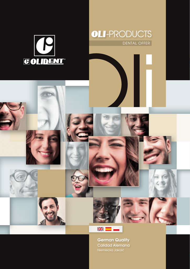 -PRODUCTS DENTAL OFFER German Quality Calidad Alemana Niemiecka Jakość OLI-PRODUCTS DENTAL OFFER OLIDENT OLIDENT is a fast growing company, focused on supplying dentists with the highest quality products. During more than 19 years on the market, Olident has come a long way from a small company with a regional reach, up to today’s figure, operating all over the country and abroad. Network representatives and cooperating distributors make our products readily available to any dentist at any time. Our products are used in small practices, large clinics and medical schools - all over the world. However, the best recommendation are thousands of our customers confirming the principle - high quality doesn’t have to be expensive. OLIDENT es una empresa dinámica de rápido crecimiento, centrada en el suministro de productos de la más alta calidad a los profesionales de la odontología. A lo largo de más de 19 años en el sector Olident ha recorrido un largo camino, desde una pequeña empresa con alcance regional, a la actualidad que atiende a clientes de todo el país y el resto del mundo. La red de representantes y distribuidores que cooperan con nosotros aseguran la disponibilidad de los productos en cada momento. Nuestros productos se utilizan tanto en pequeñas como en grandes clínicas y en universidades de todo el mundo. Nuestra mejor garantía es la opinión de miles de clientes que confirman que, - la más alta calidad no tiene por qué ser cara. OLIDENT to dynamicznie rozwijająca się firma zaopatrująca lekarzy dentystów w produkty o najwyższej jakości. Przez ponad 19 lat swojej obecności na rynku zmieniła się z małej firmy o lokalnym zasięgu w dzisiejszą - obsługującą klientów w całym kraju i za granicą. Rozwinięta sieć przedstawicieli i dystrybutorów zapewnia dostępność oferowanych produktów w każdym gabinecie i o każdej porze. Nasze produkty używane są zarówno w małych gabinetach, dużych klinikach, jak i na uczelniach medycznych na całym świecie. Naszą najlepszą rekomendacją są tysiące klientów potwierdzających, że: - wysoka jakość nie musi być droga. 0197 Dental OFFER 3 CONTENTS I Índice I SPIS TREŚCI Prophylaxis 5-6 Profilaxis Profilaktyka Direct fillings 7 - 13 Restauración directa Wypełnienia bezpośrednie Adhesives 14 - 17 Adhesivos Systemy łączące Endodontics 18 - 20 Endodoncia Endodoncja Cementation 21 - 23 Cementación Cementowanie Provisionals 24 - 27 Provisionales Prowizoria Impression materials Impresión Materiały wyciskowe 4 DENTAL OFFER 28 - 37 PROPHYLAXIS dENTAL OFFER PROPHYLAXIS 5 PROPHYLAXIS OliNano SEAL OliNano SEAL Nano MIX Silicone Protector Innovative teeth protector based on a patented silicone polymer providing exceptional adhesion to enamel and dentin without prior etching. Thanks to this innovative formula, OliNano SEAL remains on the teeth surface for approx. 12 months (other available products max. 2-3 months). ADVANTAGES: • • • • NANO-particles of flourapatite and calciumfluoride fluoride release by aminofluorides 12-month protection no etching, no light curing RECOMMENDED with: — Innovador protector dental, basado en un polímero de silicona que garantiza una adhesión excepcional a esmalte y a dentina sin previo grabado. Gracias a esta fórmula innovadora permanece en la superficie del diente 12 meses aproximadamente (otros productos similares permanecen máximo 2-3 meses). Ventajas: • • • • nano-partículas de fluorapatita y fluoruro de calcio el amino-fluoruro libera flúor protección durante 12 meses no necesita grabado ni fotocurado Recomendado con: — Innowacyjna ochrona zębów na bazie opantentowanego polimeru silikonowego zapewnia wyjątkową adhezję do szkliwa i zębiny bez uprzedniego wytrawiania. Dzięki tej innowacyjnej formule materiał utrzymuje się na powierzchni zębów około 12 miesięcy (w większości dostępnych produktów ten okres to max. 2-3 miesiące). ZALETY: • • • • POLECANE Z: — 6 PROPHYLAXIS NANO-cząsteczki fluoroapatytu i fluorku wapnia aminofluorki uwalniające fluor 12-miesięczna ochrona bez wytrwiania, bez naświetlania ASSORTMENT Reference Number OL008 Packaging Accessories 5ml bottle 20 brushes, 1 mixing pad DIRECT FILLINGS dENTAL OFFER DIRECT FILLINGS 7 DIRECT FILLINGS OliREVO OliREVO Nano-filler Technology An absolute composite REVOlution! Unique nano-hybrid material with WAX-like consistency and excellent esthetical and mechanical properties. An unusually low solubility in water and compression resistance provide long-term reliable restorations. ADVANTAGES: • NANO-filler Technology for low polimerisation shrinkage • WAX-like consistency guarnatees smooth and easy handling • long-term esthetics gives satisfaction to the patient • advanced mechanical properties provide reliable results RECOMMENDED WITH: OliEtch BOND OliBOND OliFlow SE / OliFlow ¡Composite absolutamente REVOlucionario! Único en su género, material nano-híbrido de consistencia como la cera (WAX-like). Propiedades estéticas y mecánicas excelentes. Su solubilidad extremadamente baja y su extraordinaria resistencia a la compresión garantizan un excelente resultado estético y larga durabilidad de las restauraciones. Ventajas: • la tecnología NANO garantiza baja contracción de polimerización • la consistencia WAX-like con una aplicación suave y fácil. • la estética de larga duración asegura la satisfacción de nuestros pacientes. Recomendado con: OliEtch BOND OliBOND OliFlow SE / OliFlow Absolutna kompozytowa REVOlucja! Unikalny materiał nano-hybrydowy o konsystencji WAX-like i doskonałych właściwościach estetycznych i mechanicznych. Niespotykanie niski wskaźnik rozpuszczalności w wodzie i wysoka odporność na ściskanie zapewniają długoterminowe i pewne rekonstrukcje. ZALETY: • Technologia NANO zapewnia niski skurcz polimeryzacyjny • konsystencja WAX-like gwarantuje gładką i prostą aplikację • długotrwała estetyka z