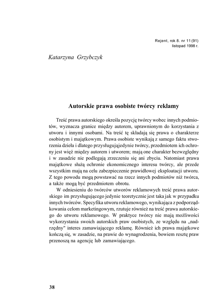 Katarzyna Grzybczyk Autorskie prawa osobiste twórcy reklamy