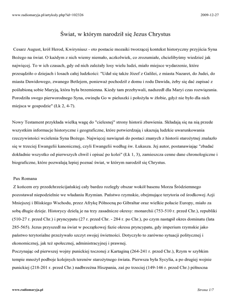 285-565). Jezus przyszedł na świat w początkowej fazie okresu pryncypatu, gdy imperium rzymskie jako