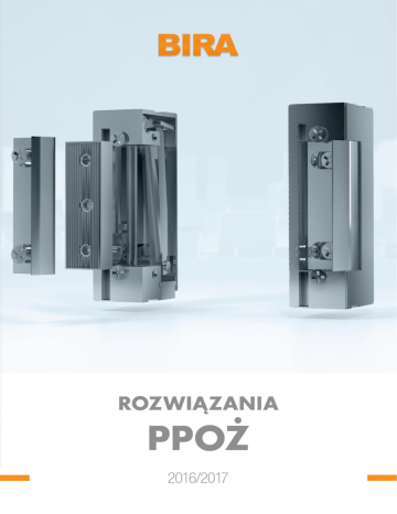ROZWIĄZANIA PPOŻ 2016/2017 BIRA TRADE to prywatna firma produkcyjna specjalizująca się w projektowaniu, produkcji i dystrybucji mechanicznych i elektromechanicznych rozwiązań do systemów kontroli dostępu. Wiedza i 30-letnie doświadczenie na rynku zabezpieczeń umożliwia oferowanie produktów najwyższej jakości, zaprojektowanych i wyprodukowanych zgodnie z nowoczesnymi technologiami, europejskimi standardami oraz oczekiwaniami klientów. Firma jest zlokalizowana w Michałowicach, niedaleko Warszawy, gdzie znajduje się biuro handlowe i zakład produkcyjny. Kompetentny i wykwalifikowany zespół, oraz odpowiednio wyposażony zakład produkcyjny zapewniają wysoką jakość produktów, elastyczność produkcji i szybkie dostawy do klientów zarówno w Polsce, jak i zagranicą. W procesach produkcyjnych firma wykorzystuje nowoczesne rozwiązania i wysokiej jakości komponenty, aby sprostać oczekiwaniom klientów i ostatecznych użytkowników. Potrzeby naszych odbiorców zawsze stawiamy na pierwszym planie, dzięki czemu cieszymy się ich zaufaniem i długoletnią współpracą. BIRA TRADE to bogata oferta, fachowa obsługa oraz profesionalne wsparcie techniczne. Zapraszamy do współpracy! NASZE PRODUKTY Od ponad 20 lat BIRA TRADE produkuje elektrozaczepy, co pozwala odpowiedzieć na potrzeby zarówno rynku rodzimego, jak i krajów eksportowych. Firma oferuje standardowe rozwiązania dla systemów bezpieczeństwa włączając w to elektrozaczepy, zwory elektromagnetyczne, trzymacze drzwiowe, elektrozamki szafkowe, zamki mechaniczne, jak również rozwiązania dedykowane do systemów przeciwpożarowych. BIRA TRADE wykonuje również okucia, elementy montażowe i akcesoria, a także produkty dopasowane do indywidualnych potrzeb klienta, zaprojektowane i wyprodukowane zgodnie z jego oczekiwaniami. BIRA TRADE oferuje rozwiązania pod markami BIRATRONIK, BIRA i HARTTE, które są powszechnie stosowane w budynkach komercyjnych i publicznych, jak również prywatnych rezydencjach. Jako producent BIRA TRADE oferuje również produkcję OEM oraz usługi projektowania nowoczesnych rozwiązań na indywidualne potrzeby klientów. Firma BIRA TRADE, analizując potrzeby rynku i swoich odbiorców, nieustannie pracuje nad nowymi rozwiązaniami i produktami, które uzupełnią ofertę i spełnią oczekiwania klientów, a tym samym poprawią komfort i bezpieczeństwo ostatecznych użytkowników. elektrozaczepy HARTTE Elektrozaczep HARTTE 75mm seria SHD 20,5mm • do drzwi przeciwpożarowych o klasyfikacji EI60 (certyfikat nr 1488-CPR-0508/W) • typ pracy NC (normalnie zamknięty) lub NO (rewersyjny) • symetryczna budowa • wymiary: szerokość 20,5mm, wysokość 75mm, głębokość 28,5mm, w wersji z monitoringiem: 20,5mm x 81,2mm x 28,5mm • wytrzymałość mechaniczna – nacisk 3500 N (350 kg) • wytrzymałość mechaniczna – cykle otwierania 200.000 • do drzwi lewych i prawych • regulowany zaczep w zakresie 4mm 28,5mm Modele HARTTE serii SHD: • standard (normalnie zamknięty) • rewersyjny (montaż na zamku dodatkowym) • niskoprądowy Powyższe modele dostępne również z monitoringiem stanu drzwi (M) lub/i warystorem (V). KATEGORIA CEWKA 12 AC/DC 12DC 12DC rewers 24AC/DC 24DC 24DC rewers 10-14 10-14 10-14 AC 21-26/DC 18-26 20-26 18-26 Oporność (Ohm) 21 38 57 130 150 250 Pobór prądu AC (mA) 410 - - 130 - - Pobór prądu DC (mA) 570 320 210 190 150 100 Max. naprężenie drzwi przy AC (N) 98 - - 98 - - Max. naprężenie drzwi przy DC (N) 18 12 10 20 13 10 Głośność (1=niska, 2=średnia, 3=wysoka) 2 1 1 1 1 1 nie opcja tak nie opcja tak Tolerancja napięcia (V) Praca ciągła pod prądem (100%ED) Elektrozaczep HARTTE 75mm 20,5mm seria SF • do drzwi przeciwpożarowych o klasyfikacji EI120 (certyfikat nr 1488-CPR-0508/W) • typ pracy NC (normalnie zamknięty) lub NO (rewersyjny) • symetryczna budowa • wymiary: szerokość 20,5mm, wysokość 75mm, głębokość 28,5mm, w wersji z monitoringiem: 20,5mm x 81,2mm x 28,5mm • wytrzymałość mechaniczna – nacisk 3500 N (350 kg) • wytrzymałość mechaniczna – cykle otwierania 200.000 • do drzwi lewych i prawych • regulowany zaczep w zakresie 4mm 28,5mm Modele HARTTE serii SF: • standard (normalnie zamknięty) • niskoprądowy • rewersyjny (montaż na zamku dodatkowym) Powyższe modele dostępne również z monitoringiem stanu drzwi (M) lub/i warystorem (V). KATEGORIA Tolerancja napięcia (V) Oporność (Ohm) 12AC/DC 12DC 12DC rewers 24AC/DC 24DC 24DC rewers 10-14 10-14 10-14 AC 21-26/DC 18-26 20-26 18-26 21 38 57 130 150 250 Pobór prądu AC (mA) 410 - - 130 - - Pobór prądu DC (mA) 570 320 210 190 150 100 Max. naprężenie drzwi przy AC (N) 98 - - 98 - - Max. naprężenie drzwi przy DC (N) 18 12 10 20 13 10 Głośność (1=niska, 2=średnia, 3=wysoka) 2 1 1 1 1 1 nie opcja tak nie opcja tak Praca ciągła pod prądem (100%ED) 4 CEWKA Elektrozaczep BIRA 20mm seria ELP 27,5mm Modele BIRA serii ELP: • do drzwi drewnianych przeciwpożarowych o klasyfikacji EI30 (certyfikat nr 1488-CPR-0508/W) • typ pracy NC (normalnie zamknięty) lub NO (rewersyjny) • wymiary: szerokość 20mm, wysokość 90mm, głębokość 27,5mm, w wersji z kontrolą zamknięcia wymiary: 20mm x 97mm x 27,5mm • wytrzymałość mechaniczna – nacisk 3500 N (350 kg) • wytrzymałość mechaniczna – cykle otwierania 200.000 • do drzwi lewych i prawych • standard • rewersyjny (montaż na zamku dodatkowym) • niskoprądowy Powyższe modele dostępne również z funkcją kontroli zamknięcia (KZ) lub/i warystorem (Y). KATEGORIA CEWKA 12AC 12DC 12DC rewers 24AC/DC 24DC 24DC rewers Tolerancja napięcia (V) 7-14 8-14 8-14 18-26 16-26 17-26 230 Oporność (Ohm) 13,2 27 60 70 155 Pobór prądu AC (mA) 650 - - 250 - - Pobór prądu DC (mA) - 450 200 350 160 110 220 - - 220 - - Max. naprężenie drzwi przy DC (N) - 24 10 40 40 10 Głośność (1=niska, 2=średnia, 3=wysoka) 2 1 1 2 1 1 nie opcja tak nie nie tak Max. naprężenie drz