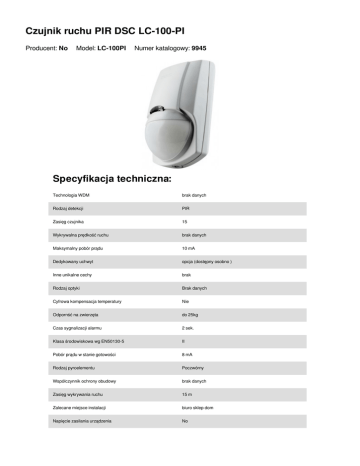 Czujnik ruchu PIR DSC LC-100-PI Specyfikacja techniczna