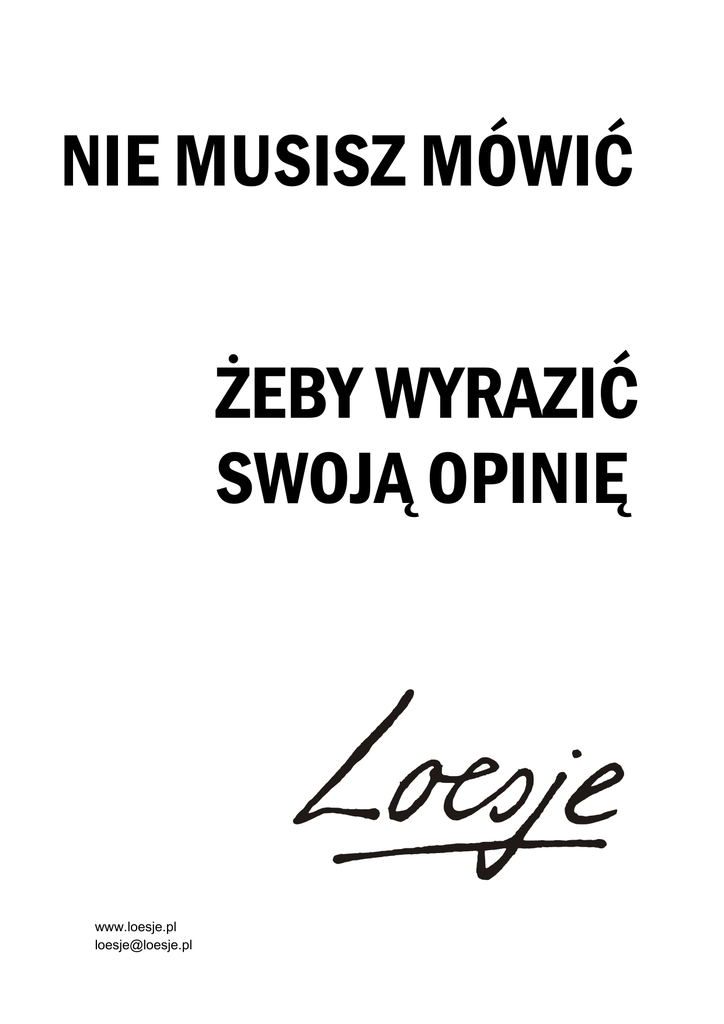 NIE MUSISZ MÓWIĆ ŻEBY WYRAZIĆ SWOJĄ OPINIĘ www.loesje.pl [email protected]