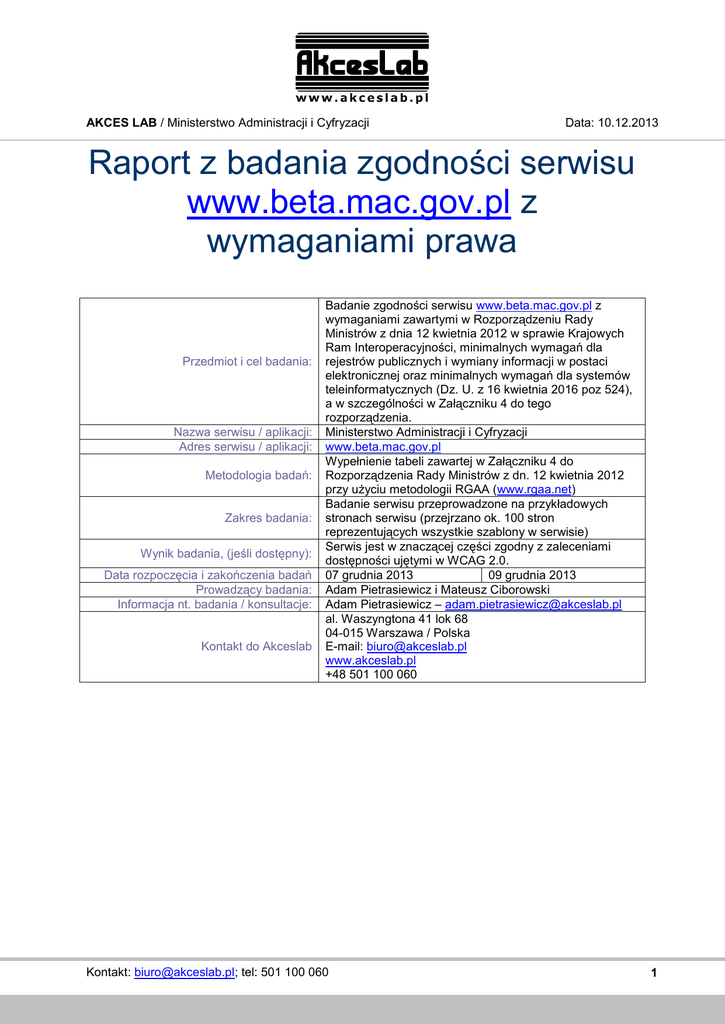 Raport z badania zgodności serwisu www.beta.mac.gov.pl z
