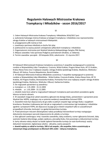 a. wyłonienie halowego mistrza Krakowa w kategorii trampkarzy i młodzików oraz reprezentantów