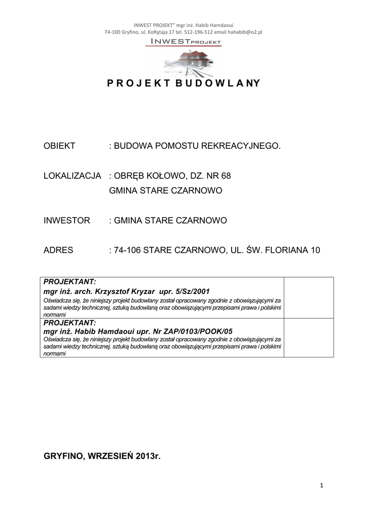 INWEST PROJEKT” mgr inż. Habib Hamdaoui 74-100 Gryfino, ul. Kołłątaja 17 tel. 512-196-512 email [email protected] P R O J E K T B U D O W L A NY OBIEKT : BUDOWA POMOSTU REKREACYJNEGO. LOKALIZACJA : OBRĘB KOŁOWO, DZ. NR 68 GMINA STARE CZARNOWO INWESTOR : GMINA STARE CZARNOWO ADRES : 74-106 STARE CZARNOWO, UL. ŚW. FLORIANA 10 PROJEKTANT: mgr inż. arch. Krzysztof Kryzar upr. 5/Sz/2001 Oświadcza się, że niniejszy projekt budowlany został opracowany zgodnie z obowiązującymi za sadami wiedzy technicznej, sztuką budowlaną oraz obowiązującymi przepisami prawa i polskimi normami PROJEKTANT: mgr inż. Habib Hamdaoui upr. Nr ZAP/0103/POOK/05 Oświadcza się, że niniejszy projekt budowlany został opracowany zgodnie z obowiązującymi za sadami wiedzy technicznej, sztuką budowlaną oraz obowiązującymi przepisami prawa i polskimi normami GRYFINO, WRZESIEŃ 2013r. 1 INWEST PROJEKT” mgr inż. Habib Hamdaoui 74-100 Gryfino, ul. Kołłątaja 17 tel. 512-196-512 email [email protected] SPIS ZAWARTOŚCI PROJEKTU BUDOWLANEGO: 1. Karta tytułowa projektu budowlanego. 2. Uprawnienia budowlane / kserokopia / 3. Zaświadczenie z izby inżynierów / kserokopia / 4. Spis zawartości projektu 5. Opis techniczny do projektu 7. Informacja dotycząca bezpieczeństwa i ochrony zdrowia 8. Plan zagospodarowania rys. nr 1 9. Przekrój podłużny pomostu rys. nr 2 10. Przekrój poprzeczny A-A rys. nr 3 11. Plan posadowienia pali rys. nr 4 12. Schemat ułożenia oczepów i dźwigarów rys. nr 5 13. Widok pomostu z góry rys. nr 6 2 INWEST PROJEKT” mgr inż. Habib Hamdaoui 74-100 Gryfino, ul. Kołłątaja 17 tel. 512-196-512 email [email protected] OPIS TECHNICZNY DO PROJEKTU ARCHITEKTONICZNO BUDOWLANEGO POMOSTU REKREACYJNEGO. 1. INWESTOR GMINA STARE CZARNOWO UL. ŚW. FLORIANA 10 74-106 STARE CZARNOWO 2. PODSTAWA OPRACOWANIA: - zlecenie inwestora, - mapa sytuacyjna w skali 1:500, - wizja lokalna, - uzupełniające pomiary poziomu średniej wody w jeziorze określony na podstawie pomiary w terenie. - Podstawowe przepisy i normy budowlane. 3. CEL OPRACOWANIA. Przedmiotową inwestycją jest budowa pomostu rekreacyjnego. Pomost będzie służyć jako obiekt rekreacyjny ogólnodostępny dla ludności miejscowej. 4. LOKALIZACJA Projektowany obiekt zlokalizowany jest na działkach nr 68 położonych na terenie miejscowości Kołowo Gmina Stare Czarnowo: - działka nr 68 - własność Gmina Stare Czarnowo. -Działka posiada dostęp do drogi nr 46. Jest to droga asfaltowa, którą można dojechać do Kołowa. 5. OPIS STANU ISTNIEJĄCEGO: Działka nr 68 o powierzchni 5000m2 stanowi naturalny nieużytek niezabudowany i nie posiada żadnego uzbrojenia. Pod względem wysokościowym mało zróżnicowany. Spadek w kierunku jeziora. Dostęp do jeziora stanowi skarpa rzędna lustra wody -128,30 rzędna góry skarpy- 129,71 W rejonie lokalizacji pomostu jezioro jest zarośnięte. Na terenie działki zalegają grunty piaszczysto - gliniaste. 5. Hydrologia Jezioro położone jest w m. Kołowo. Powierzchnia jeziora wynosi ok. 7800m2. Średni promień jeziora to ok. 50m, maksymalna średnica 65m, średnia głębokość 2,2m. Głębokość max. 2,4m. Średni poziom lustra wody 128,30 m n.p.m . Jezioro jest jeziorem przepływowym. 3 INWEST PROJEKT” mgr inż. Habib Hamdaoui 74-100 Gryfino, ul. Kołłątaja 17 tel. 512-196-512 email [email protected] Minimalne wyniesienie dolnej belki konstrukcji pomostu nie może być niższe od poziomu średniego wysokiego tj. od 132,80 m n.p.m. W projekcie przyjęto dolny poziom belki (belki poprzeczne) na wysokości 133,10 m n.p.m. Pomiarowa głębokość jeziora po trasie projektowanego pomostu przy rzędnej zwierciadła wody 128,30 wynosi: - w odległości 2,0 m od brzegu - 0,75 m - w odległości 4,0 m od brzegu - 0,75 m - w odległości 6,0 m od brzegu - 0,75 m - w odległości 8,0 m od brzegu - 0,85 m - w odległości 10,0 m od brzegu – 1,19 m - w odległości 12,0 m od brzegu - 1,43 m 6. Uzbrojenie doziemne Uzbrojenie doziemne i napowietrzne nie występuje 7. Opis rozwiązań projektowych 7.1. Posadowienie pomostu Pomost jest posadowiony i połączony z gruntem za pomocą pali drewnianych z drewna sosnowego nieżywicowanego, wbijanych w dno jeziora za pomocą kafaru, znajdującego się na specjalnej platformie pływającej. Posadowieniu pomostu dokonano w oparciu o wykonane badania geologiczne gruntu oraz pomiary głębokościowe dna jeziora wykonane w sierpniu 2013 r. Dno jeziora na badaną głębokość 6,0 m (licząc od dna jeziora) stanowi grunt piaszczysty. Są to piaski gruboziarniste i średnioziarniste o stopniu zagęszczenia 1=0,6. Głębokość wbicia pali w grunt nośny ustalono na podstawie obliczeń statycznych (patrz ppkt. 7.3.) i wynosi ona dla pali ∅250 H=3,0m. Dla poszczególnych pali głębokość wbicia w grunt nośny wynosi: P-1 h = 3,00 m ∅250 L = 3,65 m szt. 2 P-2 h = 3,00 m ∅250 L = 3,80 m szt. 2 P-3 h = 3,00 m ∅250 L= 3,90 m szt. 2 P-4 h = 3,00 m ∅250 L = 4,05 m szt. 2 P-5 h = 3,00 m ∅250 L = 4,15 m szt. 4 P-6 h =3,00 m ∅250 L= 4,50m szt. 4 P-7 h =3,00 m ∅250 L= 4,74m szt. 4 Na budowę zamówić pale 0,3 m dłuższe od długości określonej projektem, gdyż w trakcie zabijania pali górna część pala ulega zniszczeniu i należy ja usunąć zachowując rzędną góry pala 128,50. Pale sosnowe z drewna nieżywicowanego zaimpregnowane metoda ciśnieniową. Pale dostarczane na budowę musza być okorowane, zaostrzone i zaimpregnowane. 4 INWEST PROJEKT” mgr inż. Habib Hamdaoui 74-100 Gryfino, ul. Kołłątaja 17 tel. 512-196-512 email [email protected] Uwaga - dopuszcza się zastosowanie innego gatunku drewna zachowania wytrzymałości na korozję równej drewnu sosnowemu pod warunkiem 7.2. Konstrukcja pomostu Zaprojektowano konstrukcję pomostu z drewna sosnowego nieżywicowanego klasy C30. Tarcica powinna być suszona komorowo i czterokrotnie strugana. Drewno nie może mieć określonych normowo wad np. chorych sęków lub pęknię