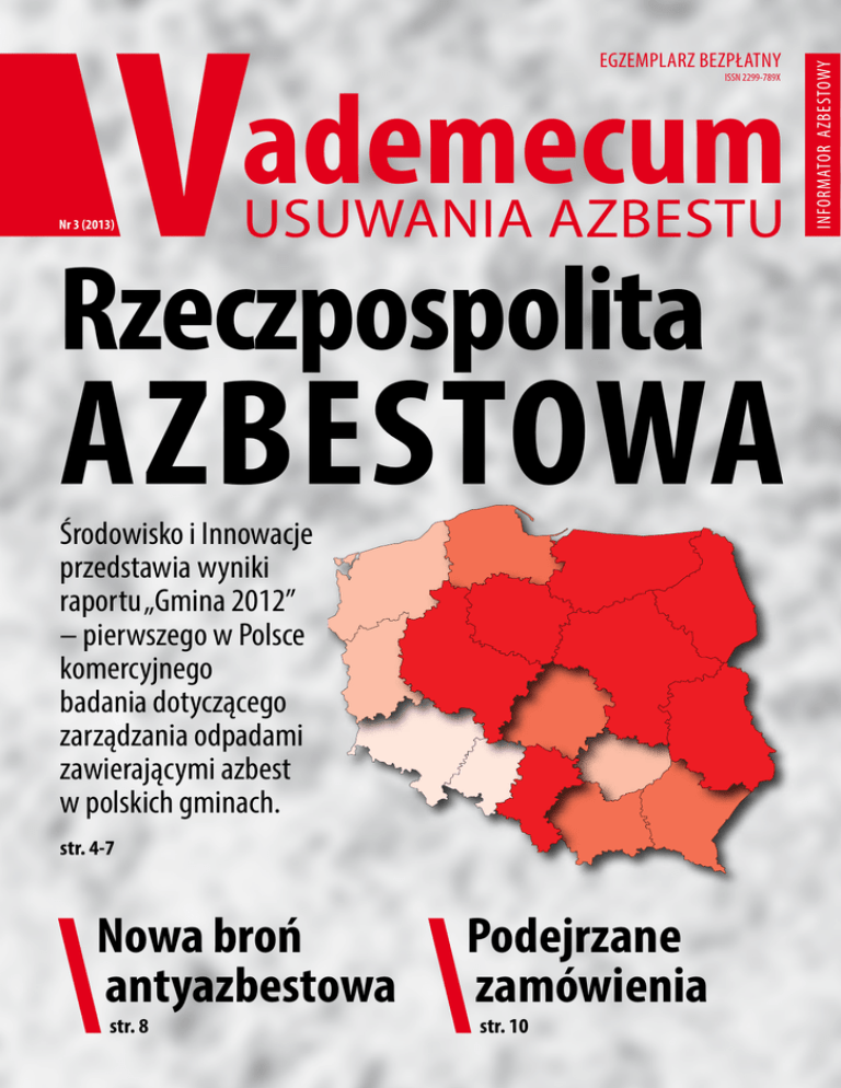 Nr 3 (2013) ademecum usuwania azbestu ISSN 2299-789X azbestowa Środowisko i Innowacje przedstawia wyniki raportu „Gmina 2012” – pierwszego w Polsce komercyjnego badania dotyczącego zarządzania odpadami zawierającymi azbest w polskich gminach. str. 4-7 Nowa broń antyazbestowa str. 8 Podejrzane zamówienia str. 10 informator azbestowy V Rzeczpospolita egzemplarz bezpłatny 2 Najlepiej w Dobrowie Już 5 lat Środowisko i Innowacje skutecznie zarządza największym i najnowocześniejszym w Polsce składowiskiem odpadów niebezpiecznych zawierających azbest. To jedyna ekologiczna instalacja w Europie, na której unieszkodliwianie azbestu łączy się z rewitalizacją środowiska zdegradowanego przez kopalnię siarki. W 2012 roku minęło równo 5 lat od momentu, w którym spółka Środowisko i Innowacje (SiI) stworzyła najnowocześniejsze i największe w Polsce składowisko odpadów niebezpiecznych zawierających azbest. Położone jest ono na gruntach miejscowości Dobrów (gm. Tuczępy), na wyjałowionych terenach zdegradowanych eksploatacją siarki przez kopalnię w Grzybowie. Wokół w promieniu kilometra znajdują się jedynie nieużytki bez żadnych zabudowań. Dzięki takiej lokalizacji instalacja nie ma negatywnego wpływu na zdrowie ludzi. Środowisko i Innowacje to firma wielokrotnie nagradzana i wyróżniana w Polsce i Europie za innowacyjność i profesjonalizm świadczonych usług. W 2012 roku spółka jako jedyna z regionu została nominowana przez marszałka województwa świętokrzyskiego do Nagrody Gospodarczej Prezydenta RP. Dziennik „Puls Biznesu” uznał Środowisko i Innowacje za Gazelę Biznesu 2011, umieszczając spółkę w gronie najdynamiczniej rozwijających się małych i średnich firm w ciągu 3 ostatnich lat. SiI przyznano też m.in. tytuł Novatora Roku 2008 w konkursie organizowanym przez Staropolską Izbę Przemysłowo-Handlową, dwukrotnie tytuł „Partnera Polskiej Ekologii” w konkursie organizowanym przez Prezydenta RP, złoty medal na targach w Brukseli – Brussels Eureka Innova 2009 – oraz brązowy medal na najbardziej prestiżowych w Europie targach ekologicznych Concours Lépine Le Salon International de L’invention de Paris 2010. Firma świadczy kompleksowe usługi w zakresie gospodarowania odpadami niebezpiecznymi (o kodach 170601 i 170605), polegające na unieszkodliwianiu, magazynowaniu, zbieraniu, pakowaniu oraz ich transporcie. Na składowisko SiI trafiają wyłącznie odpady azbe- stowe pochodzące z remontu i demontażu obiektów budowlanych. Instalacja powstała i jest zarządzana zgodnie z IPPC (ang. Integrated Pollution Prevention and Control), czyli dyrektywą unijną w sprawie zintegrowanego zmniejszania zanieczyszczeń. Ma zintegrowany system zarządzania potwierdzony certyfikatami ISO 14001 oraz ISO 9001. Spółka jako jedyna w Polsce zabezpiecza karty przekazania odpadów specjalnymi hologramami, które uniemożliwiają ich nielegalne używanie. Instalację w Dobrowie monitorują najważniejsze instytucje państwowe odpowiedzialne za ochronę środowiska i bezpieczeństwo oraz zdrowie ludzi. 3 Spis treści 4 aktualności RAPORT Co z tą Polską azbestową? Nowoczesna broń antyodpadowa Mieszczące się w prowincji Quebec w Kanadzie miasto Asbestos, uznawane za światową kolebkę azbestu (od niego azbest wziął swoją nazwę), było niegdyś bogate dzięki kopalniom tego niebezpiecznego minerału. Jeffrey Mine, jedna z największych na świecie kopalni odkrywkowych, miała przetrwać dzięki rządowej pożyczce 58 mln dolarów kanadyjskich. Obecny rząd prowincji jest jednak przeciwny dalszej eksploatacji kopalni azbestu z powodów środowiskowych i wycofał się z udzielenia pożyczki, co oznacza definitywne i ostateczne zamknięcie Jeffrey Mine. Aplikacja Baza Gmin pozwala na skuteczne zarządzanie odpadami z azbestu Warmia i Mazury ciągle walczą Środowisko i Innowacje prezentuje wyniki unikalnego badania „Gmina 2012” 8 10 Podejrzanie tanie zamówienia Co może doprowadzić do zerwania azbestowego kontraktu w gminie 12 Kolebka zamknięta Tam, gdzie azbest odpada na zawsze W Polsce działa kilkadziesiąt podmiotów składujących odpady azbestowe Vademecum ISSN 2299-789X usuwania azbestu patronat merytoryczny Iwona Skowrońska-Przygodzka, Zbigniew Pik, Zdzisław Zięba, Włodzimierz Kogut redaktor naczelny Ewelina Kopczan-Surmacz opracowanie graficzne Marek Wójcik korekta Agnieszka Mocarska redakcja Tap Us Media kontakt [email protected] wydawca Środowisko i Innowacje Sp. z o.o. www.sii.com.pl e-mail [email protected] 28-142 Tuczępy, Dobrów 8, tel. (15) 864 51 13, faks (41) 260 50 01 prezes zarządu Zbigniew Pik wiceprezes zarządu i dyrektor handlowy Zdzisław Zięba dyrektor generalny Iwona Skowrońska-Przygodzka dyrektor techniczny Włodzimierz Kogut dyrektor marketingu Ewelina Kopczan-Surmacz Wydanie bezpłatne. Wszelkie prawa zastrzeżone. W 2011 roku otwartą wojnę odpadom zawierającym azbest wypowiedziało 16 samorządów z Warmii i Mazur. Wówczas z tego regionu zniknęło 450 ton azbestu. W 2012 roku na pozbycie się wyrobów zawierających ten groźny minerał zdecydowały się już 33 gminy. Dzięki ich zaangażowaniu i pomocy finansowej z zewnątrz z regionu usunięto ich prawie 2300 ton. Praktycznie we wszystkich gminach spośród 33, które zgłosiły się po dofinansowanie do NFOŚiGW, zadanie dobiegło końca. Pod koniec 2012 roku usuwanie trwało jeszcze tylko na terenie gminy Mikołajki (samorząd pozbywał się 74 ton azbestu). Lubelszczyzna wyda 45 mln zł Województwo lubelskie wyda 45 mln zł na usuwanie azbestu. Większość pieniędzy – ponad 38 mln zł – popłynie ze Szwajcarsko-Polskiego Programu Współpracy. Resztę dołoży samorząd województwa. Będą pieniądze nie tylko na pozbywanie się azbestowych wyrobów, ale też ok. 5 mln zł na nowe dachy dla najuboższych rodzin. Do 2015 roku z tego regionu ma zniknąć ok. 60 tysięcy ton substancji. To jednak kropla