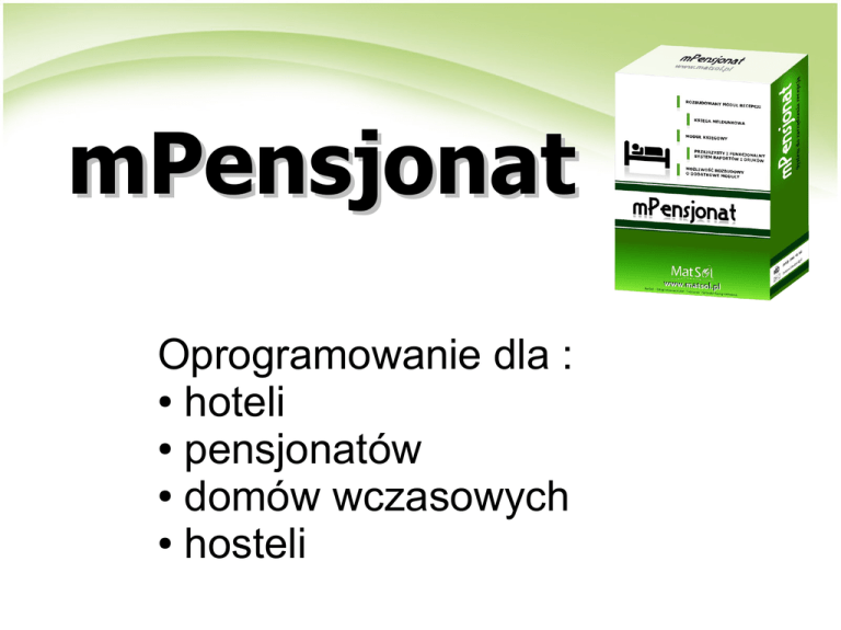Oprogramowanie dla : hoteli pensjonatów domów wczasowych hosteli