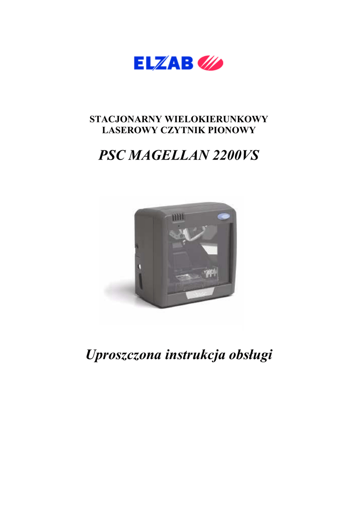 STACJONARNY WIELOKIERUNKOWY LASEROWY CZYTNIK PIONOWY PSC MAGELLAN 2200VS Uproszczona instrukcja obsługi Uproszczona instrukcja obsługi MAGELLAN 2200VS SPIS TREŚCI 1. WSTĘP ................................................................................................................... 3 2. PRZYGOTOWANIE CZYTNIKA ORAZ INSTALACJA .............................. 4 2.1. PRZYGOTOWANIE CZYTNIKA ....................................................................................4 2.2. INSTALACJA CZYTNIKA ...............................................................................................4 3. UśYWANIE CZYTNIKA.................................................................................... 7 3.1. SKANOWANIE ...................................................................................................................7 3.2. FUNKCJE WSKAŹNIKA I PRZYCISKU .......................................................................8 3.3. CZYSZCZENIE CZYTNIKA ............................................................................................9 4. PODŁĄCZENIE CZYTNIKA DO KAS MARKI ELZAB............................. 10 4.1. PODŁĄCZENIE CZYTNIKA W WERSJI KLAWIATUROWEJ..............................10 4.2. PODŁĄCZENIE CZYTNIKA W WERSJI RS ..............................................................11 5. KONFIGURACJA CZYTNIKA DO PRACY Z KASAMI ELZAB.............. 12 5.1. KONFIGURACJA CZYTNIKA Z INTERFEJSEM KLAWIATUROWYM (KB) ...12 5.2. KONFIGURACJA CZYTNIKA Z INTERFEJSEM RS ...............................................13 2 Uproszczona instrukcja obsługi MAGELLAN 2200VS 1. WSTĘP Instrukcja przedstawia w sposób uproszczony podstawowe informacje dotyczące sposobu instalacji oraz konfiguracji i uŜywania czytnika Magellan 2200VS. Przed przystąpieniem do jakichkolwiek czynności z wykorzystaniem czytnika naleŜy zapoznać się z niniejszą instrukcją. Bardziej zaawansowani uŜytkownicy mogą pobrać instrukcję „Product Reference Guide” (R44-2365A) ze strony producenta www.psc.com. 3 Uproszczona instrukcja obsługi MAGELLAN 2200VS 2. PRZYGOTOWANIE CZYTNIKA ORAZ INSTALACJA Punkt ten opisuje czynności, które naleŜy wykonać w celu: − przygotowania czytnika do instalacji po jego otrzymaniu, − instalacji czytnika. 2.1. PRZYGOTOWANIE CZYTNIKA Po otrzymaniu czytnika naleŜy: 1. Sprawdzić opakowanie w zakresie ewentualnych uszkodzeń, które mogły powstać podczas transportu (jeŜeli wykryto uszkodzenia opakowania naleŜy zgłosić je niezwłocznie przewoźnikowi). 2. Wyjąć wszelkie akcesoria z opakowania, włączając zasilacz, instrukcję obsługi etc. 3. Zdjąć ochronne opakowanie czytnika i ostroŜnie wyciągnąć urządzenie z kartonu (naleŜy pamiętać o zachowaniu kompletnego kartonu i opakowania na wypadek konieczności zwrotu do dostawcy po wykryciu uszkodzenia czytnika). 4. Zdjąć ramkę montaŜową z czytnika, jeŜeli jest załoŜona. 5. Podłączyć zasilacz do czytnika (rys. 2), a następnie do źródła zasilania. Czytnik powinien wydać dźwięk potwierdzający przejście testu zasilania, a zielony wskaźnik LED (rys. 4) powinien świecić jednostajnie wskazując, Ŝe czytnik jest gotowy do skanowania. 6. Zeskanować kilka popularnych kodów kreskowych. Po zeskanowaniu kaŜdego z kodów czytnik powinien wydać dźwięk, a zielony wskaźnik LED powinien rozbłysnąć. UWAGA: Czytnik moŜe nie rozpoznawać niektórych kodów, jeŜeli nie jest podłączony do urządzenia zewnętrznego (kasa, komputer, terminal etc.). Niektóre dane mogą być buforowane (magazynowane) przez czytnik dopóki urządzenie zewnętrzne nie zasygnalizuje gotowości ich odbioru. Po pozytywnym przejściu procedury opisanej w punkcie 2.1. naleŜy odłączyć czytnik od zasilania, a następnie moŜna przystąpić do instalacji. 2.2. INSTALACJA CZYTNIKA Magellan 2200VS moŜe pracować jako czytnik wolnostojący lub moŜe zostać przymocowany do powierzchni sprzedaŜy lub ściany. Podczas instalacji naleŜy postępować zgodnie z poniŜszymi wskazówkami: 1. NaleŜy określić najlepszą lokalizację dla czytnika uwzględniając ewentualną konieczność wywiercenia otworów na przewody, a takŜe takie ich poprowadzenie, aby nie uległy uszkodzeniu. Ponadto naleŜy umieszczać czytnik w miejscach, w których nie jest naraŜony na nadmierne 4 Uproszczona instrukcja obsługi MAGELLAN 2200VS wibracje, uderzenia, zalanie etc. Nie naleŜy równieŜ utrudniać dostępu do złącz czytnika poprzez błędny wybór jego lokalizacji. 2. Trzeba ustalić, czy konieczne jest wywiercenie dziury na przewody. JeŜeli tak, naleŜy przytrzymać czytnik lub ramkę montaŜową w wybranej, docelowej pozycji, aby określić lokalizację otworu. Następnie naleŜy zaznaczyć jego środek i wywiercić otwór o średnicy 3,2 cm. 3. NaleŜy przymocować ramkę montaŜową do powierzchni sprzedaŜy lub ściany uŜywając dwóch śrub 3,5mm (rys. 1d). Nie zachodzi bezwzględna konieczność montaŜu ramki, jeŜeli czytnik będzie uŜywany jako wolnostojący (nie przymocowany), uzyskując w ten sposób moŜliwość korzystania z antypoślizgowych podkładek umieszczonych na jego spodniej stronie. 4. NaleŜy zdjąć pokrywę złącz i podłączyć przewody do czytnika (rys. 1a i 2), a następnie wyprowadzić je zgodnie z rys. 1b (montaŜ czytnika do powierzchni sprzedaŜy) lub 1c (montaŜ czytnika do ściany). 5. Przed podłączeniem przewodów czytnika do jakiegokolwiek urządzenia (kasa elektroniczna, komputer, terminal etc.), upewnić się, Ŝe jest ono wyłączone. Po podłączeniu przewodów naleŜy podłączyć zasilacz czytnika, a następnie włączyć urządzenie, do którego czytnik został podłączony. 6. NaleŜy wsunąć czytnik do ramki montaŜowej dbając o prawidłowe ułoŜenie przewodów (rys. 1 d). rys. 1 - instalacja 5 Uproszczona instrukcja obsługi MAGELLAN 2200VS System antykradzieŜowy EAS (podłączenie opcjonalne) Zasilanie Kabel komunikacyjny Czytnik ręczny (podłączenie opcjo