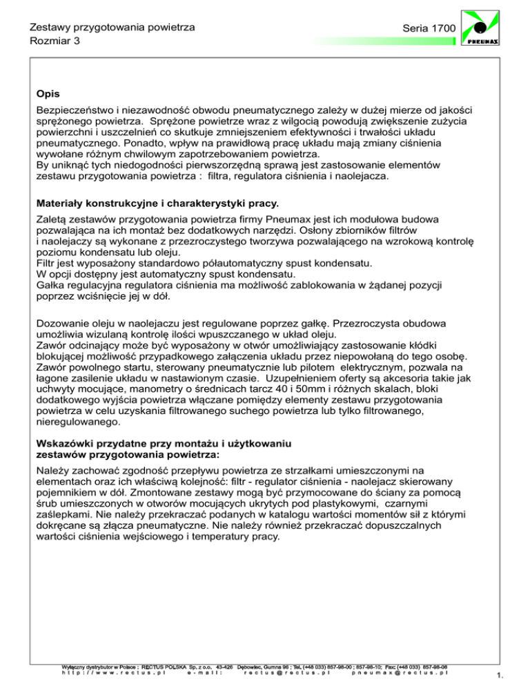 Seria 1700 Zestawy przygotowania powietrza Rozmiar 3