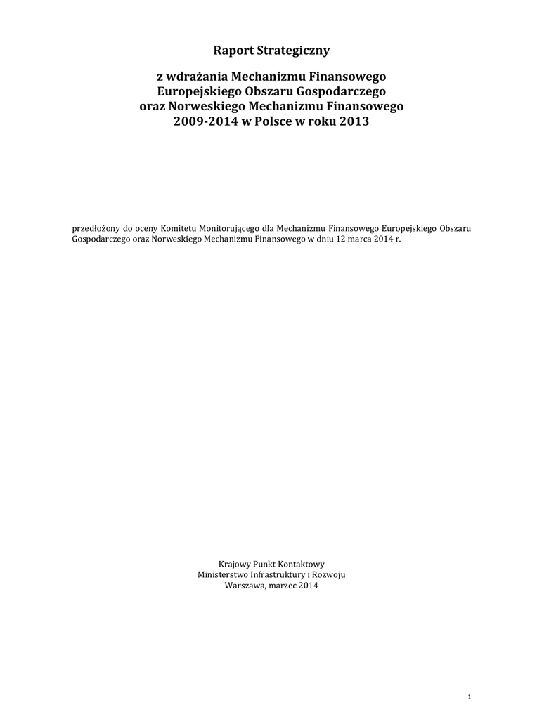 Raport Strategiczny z wdrażania Mechanizmu Finansowego