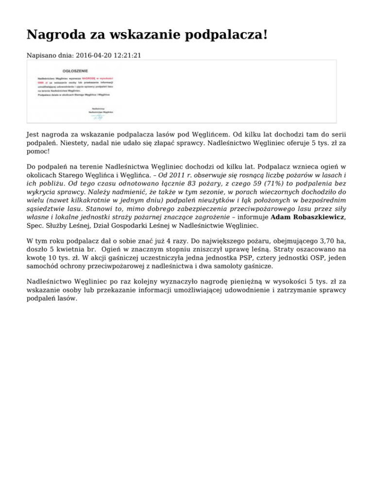 Nagroda za wskazanie podpalacza!