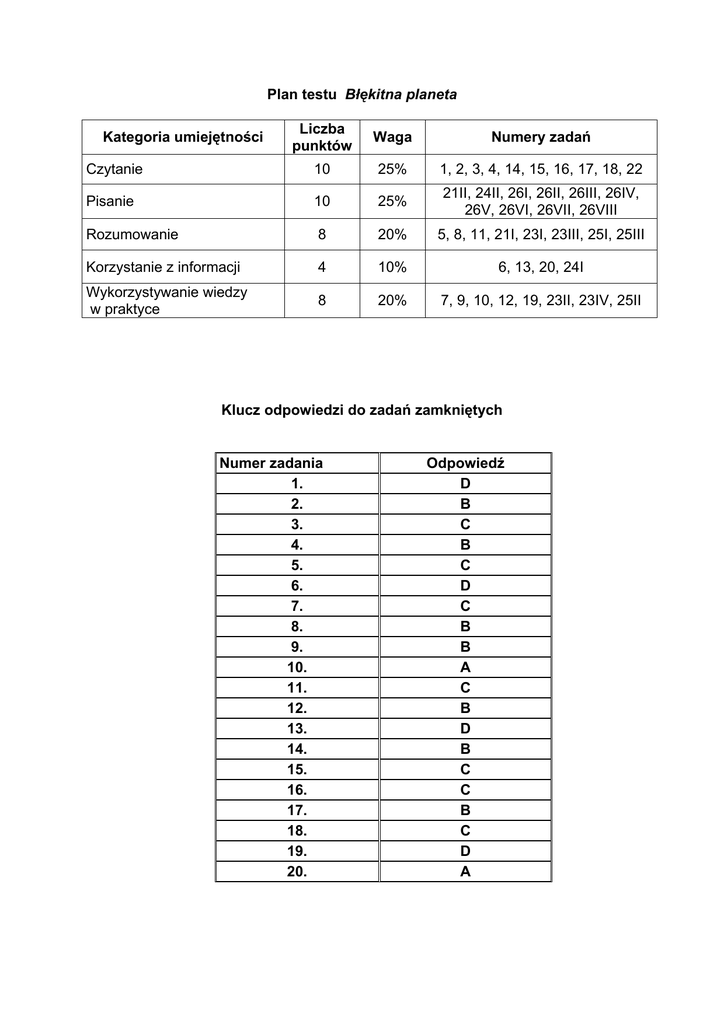 Plan testu Błękitna planeta Kategoria umiejętności Liczba punktów