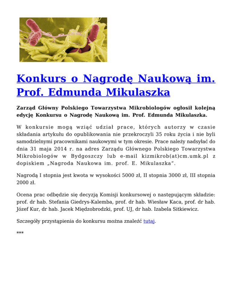 Konkurs o Nagrodę Naukową im. Prof. Edmunda Mikulaszka