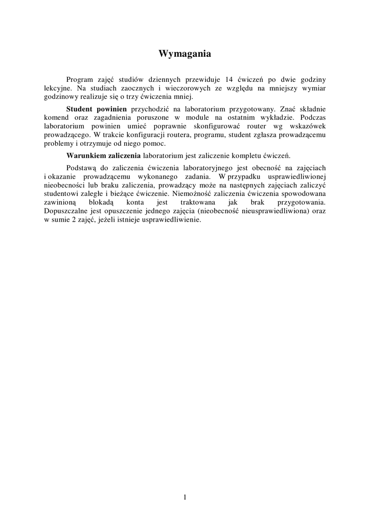 prowadz cego. W trakcie konfiguracji routera, programu, student zgłasza prowadz cemu