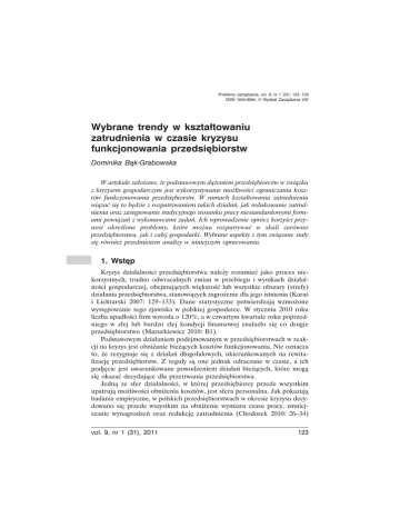Wybrane trendy w ksztaďtowaniu zatrudnienia w czasie kryzysu