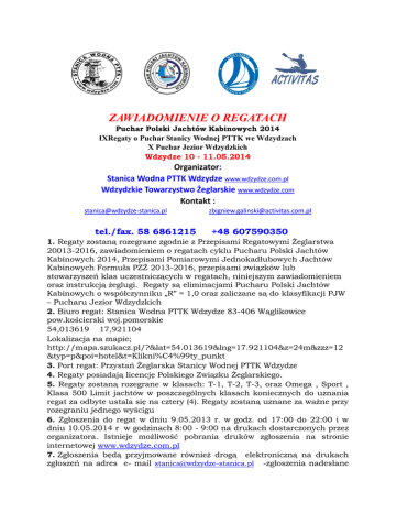 zawiadomienie o regatach - Stanica Wodna PTTK Wdzydze