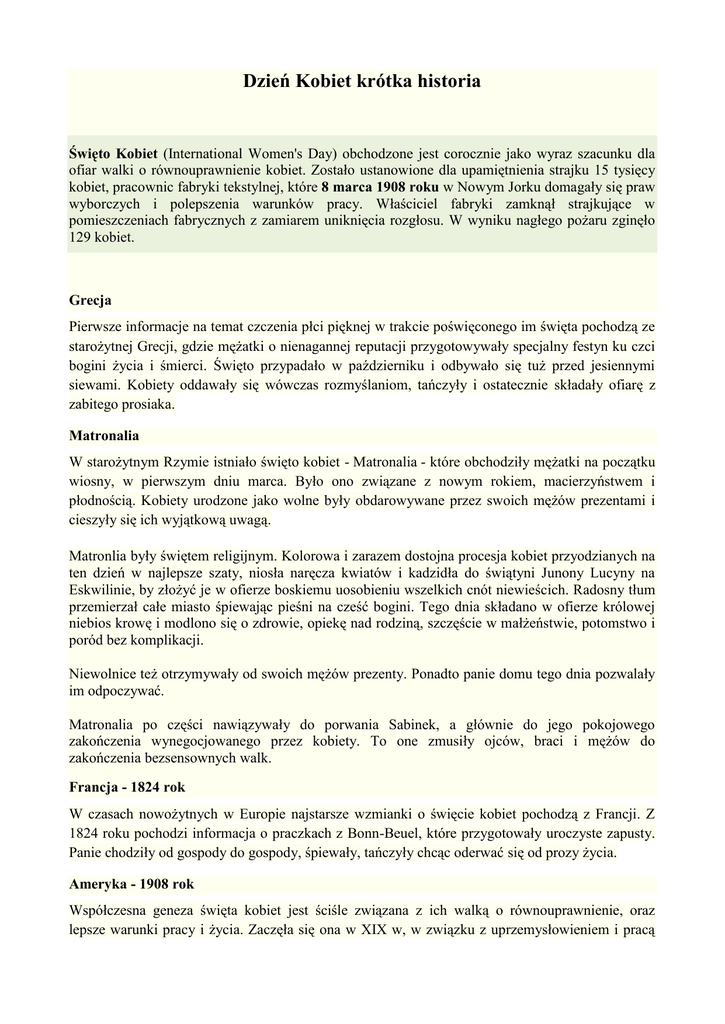 Dzień Kobiet krótka historia