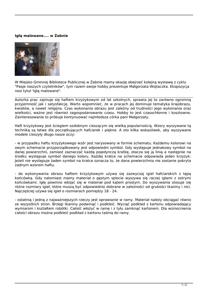 Igłą malowane.... w Żabnie W Miejsko Gminnej Bibliotece Publicznej