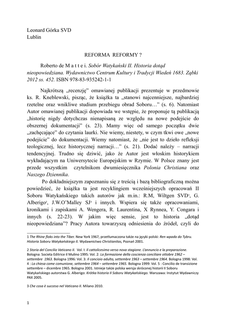 Leonard Górka SVD Lublin REFORMA REFORMY ? Roberto de M