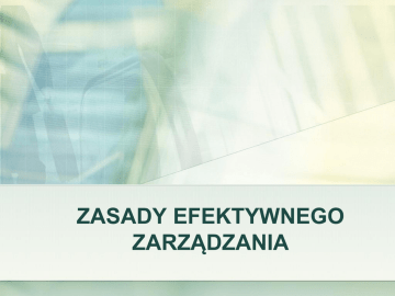 ZASADY EFEKTYWNEGO ZARZĄDZANIA EFEKTYWNE ZARZĄDZANIE PROBLEMY Interakcje z otoczeniem Władza jako podmiot sterowania i kierowania Strategie Struktury organizacyjne Systemy sterowania Monitoring efektów2 FORMY WŁADZY Władza wynikająca z zależności od rządzącego Władza wynikająca z wiedzy rządzącego Władza wynikająca z zaufania do rządzącego 3 WŁADZA WYNIKAJĄCA Z ZALEŻNOŚCI OD RZĄDZĄCEGO Panowanie – dyrygowanie – rozkazywanie Model autokratyczny Skuteczność w osiąganiu efektów w krótkim czasie Pod pretekstem skuteczności rządzący nie dopuszczają innych form władzy 4 WŁADZA WYNIKAJĄCA Z WIEDZY RZĄDZĄCEGO W uznaniu pewnych indywidualnych cech kogoś, przypisujemy mu władzę Czyjejś władzy poddajemy się sami Władza osób posiadających autorytet naukowy, wiedzę ekspercką, doświadczanie zawodowe 5 WŁADZA WYNIKAJĄCA Z ZAUFANIA DO RZĄDZĄCEGO Najskuteczniejsza forma władzy O zakresie władzy decyduje reputacja i emocje Ludzie ulegają wpływowi przede wszystkim na podstawie wiary i zaufania Przywództwo jako forma władzy Konieczny w organizacji wspólny system wartości 6 RÓŻNICE POMIĘDZY KIEROWNIKIEM A PRZYWÓDCĄ ORGANIZACJI KIEROWNIK (manager) PRZYWÓDCA (leader) kieruje innymi by zrobili to co ma być zrobione prowadzi innych, by chcieli zrobić to co ma być zrobione działa poprzez kulturę organizacji działa poprzez hierarchię organizacji zmaga się ze złożonością odnajduje fakty zmaga się ze zrozumieniem podejmuje decyzje zajmuje się twoim obecnym miejscem zabiera cię w nowe miejsce 7 CZYNNIKI DETERMINUJĄCE ZMIENNOŚĆ ORGANIZACJI WIZJA PRZYWÓDZTWO OTOCZENIE filozofia funkcje forma STRATEGIE jakość produktu lub usług cele inspiracje STRUKTURY WARTOŚCI kultura zachowania EFEKTY SYSTEMY sukces finansowy efektywność wartości konsumenckie Źródło: J.Pickering, R.Matson, Why Executive Development Programs (Alone) Don't Change Organizations, T&D. 8 ISTOTA MODELU PRZYWÓDZTWO Filozofia przywództwa Funkcje przywództwa motywowanie ludzi do pracy przesunięcie nacisku z kontroli na pobudzenie zaangażowania wzmocnienie samodzielności, poczucia współtworzenia czegoś ważnego decentralizacja zarządzania wspieranie pracowników zamiast wydawania poleceń pouczanie a nie kontrolowanie tworzenie klimatu pracy zespołowej Formy przywództwa dzielenie władzy i odpowiedzialności przez pracowników wszystkich poziomów organizacji współuczestnictwo w podejmowaniu decyzji 9 wspieranie rozwoju osobistego pracowników IDEOLOGIA ORGANIZACJI WIZJE / MISJE Cechą przywódcy jest posiadanie zaufania pracowników, w oparciu o dzielone przez nich wartości i wizje Wizją jest nieokreślony szczegółowo, pożądany stan przyszłości Misją jest ogólnie określony cel nadrzędny, który prowadzi do wizji w jednym zdaniu określa dokąd organizacja zmierza i dlaczego pozwala pracownikom na ogarnięcie ich własnego wkładu w ostateczny efekt staje się inspiracją do lepszego działania Znajomość wizji i misji pozwala na poczucie współodpowiedzialności pracowników 10 IDEOLOGIA ORGANIZACJI WARTOŚCI System wartości, dzielony przez pracowników obejmuje: Wartości upowszechniane w organizacji pozwalają zrozumieć: kulturę pracy klimat pracy indywidualne i grupowe zachowania dlaczego wykonuje się pracę w określony sposób jaki jest stan świadomości pracowników i jak wpływa on na sposób organizowania pracy jak winien zmieniać się sposób wzajemnego zachowania Pracownicy podzielający wspólny system wartości: działają samodzielnie są świadomi odpowiedzialności potrzebują przywództwa dla kontroli konceptualnej, a nie sprawdzania wykonywanych zadań 11 Strategia Dział sztuki wojennej zajmujący się przygotowywaniem i prowadzeniem wojny, jej kampanii, bitew Szeroki program wytyczania i osiągania celów organizacji oraz reakcja organizacji w czasie na oddziaływanie jej otoczenia (Stoner, Freeman, Gilbert) 12 DEFINICJA Strategia (wg Marchesnay) Całość złożona z refleksji, decyzji i działań mających na celu: określenie celów ogólnych i zadań dokonanie wyboru środków realizacji celów podjęcie i wykonanie określonej działalności kontrolowanie osiągnięć związanych z jej wykonaniem i realizacją celów 13 Zasada 80/20 według R. Kocha NAKŁADY WYNIKI PRZYCZYNY KONSEKWENCJE WYSIŁKI REZULTATY 14 DEFINICJA Zarządzanie strategiczne zespolenie strategii i działań dla osiągnięcia rozwoju i sprawnego funkcjonowania organizacji i w relacji do zmieniającego się otoczenia, ukierunkowane na minimalizację ryzyka stworzenie systemowych podstaw dla wykorzystania, występujących w otoczeniu zmian, jako okazji do podejmowania nowych działań lepiej zaspokajających interesy organizacji 15 Elementy zarządzania strategicznego analiza przeprowadzana w dwóch obszarach (wnętrze i otoczenie firmy), przeprowadza się analizę SWOT, prognozy wskaźników, przybliżenie odpowiedzi na pytanie w jakich warunkach będzie działała firma w przyszłości i jakie ma możliwości dostosowania się do zmiennego otoczenia planowanie strategiczne przeprowadzane wariantowo, prognozowanie otoczenia na różne sposoby realizacja strategii polega na przełożeniu 16 planów na konkretne działania Schemat zarządzania strategicznego PROGNOZY ANALIZA DIAGNOZA (SWOT) FORMUŁOWANIE CELÓW CELE ANALIZY DIAGNOZY PROGNOZY CEL # CEL # CEL # POLITYKA # POLITYKA # POLITYKA # PROGRAM # PROJEKT PLAN STRATEGICZNY PROJEKT PROGRAM # PROJEKT PROJEKT PROGRAM # PROJEKT PROGRAMY OPERACYJNE ZARZĄDZANIE STRATEGICZNE MISJA PLANOWANIE WIZJA PROJEKT ORGANIZOWANIE REALIZACJA ZADAŃ - PROJEKTÓW MONITORING EFEKTÓW REALIZACJI ZADAŃ KIEROWANIE PRZEWODZENIE KONTROLA MONITORING 17 ANALIZA SWOT S – STRENGTHS ( SILNE STRONY, ATUTY) W – WEAKNESSES (SŁABE STRONY, SŁABOŚCI) O – OPPORTUNITIES (SZANSE, OKAZJE) T – THREATS (ZAGROŻENIA) S i W – dotyczą z reguły czynników wewnętrznych O i T – dotyczą z reguły czynników zewn