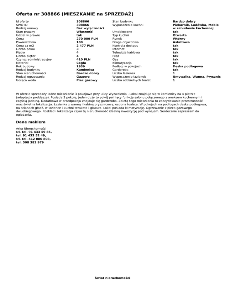 Oferta nr 308866 (MIESZKANIE na SPRZEDAŻ)