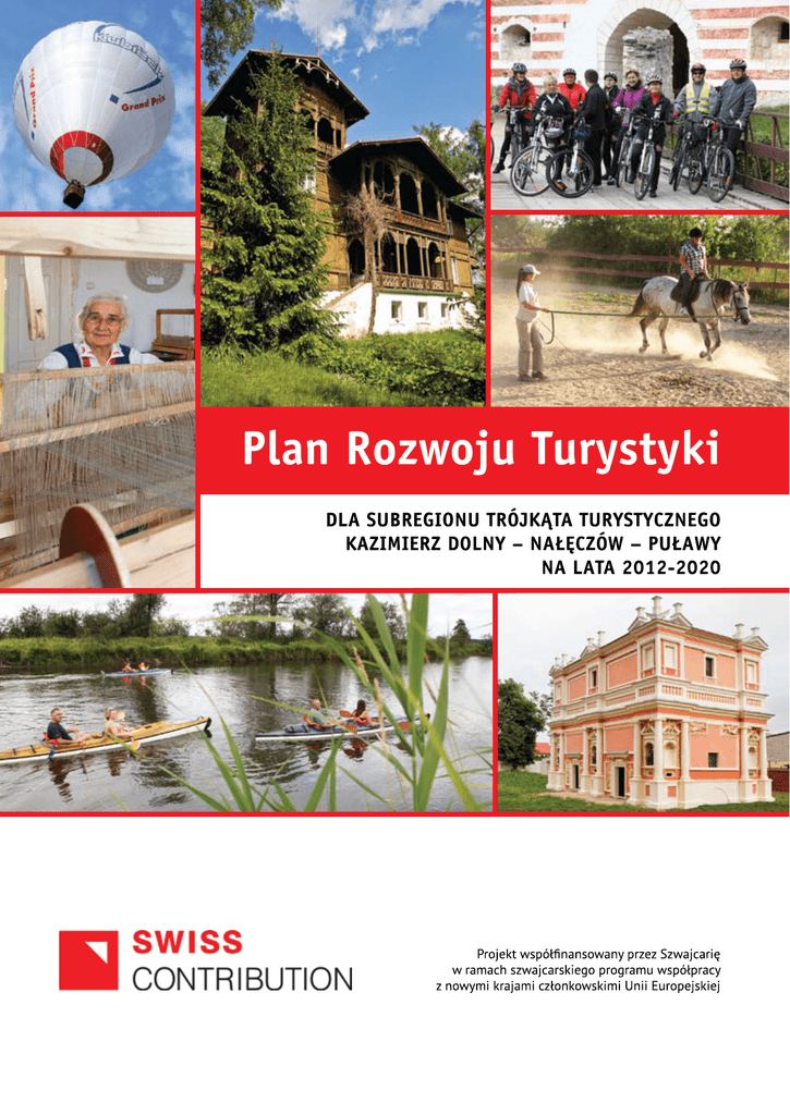 Plan Rozwoju Turystyki dla subregionu Trójkąta Turystycznego Nałęczów – Kazimierz Dolny – Puławy na lata 2012-2020 wstęp....................................................................................... 7 Część I. Wprowadzenie ............................................................. 8 Wydawca: Lokalna Grupa Działania „Zielony Pierścień” Tekst: Centrum Doradztwa Strategicznego s.c. D. Bieńkowska, J. Szymańska, C. Ulasiński Tłumaczenie: Biuro Tłumaczeń Beata Brice Fotografie: Archiwum LGD „Zielony Pierścień”, Dariusz Malinowski , oraz zbiory: miasta Puławy i 11 gmin należących do LGD „Zielony Pierścień” Nakład: 2,5 tys. egzemplarzy Druk: BACCARAT Zakład Poligraficzny s.c. Małgorzata Olech, Mirosław Olech Wydawnictwo jest współfinansowane przez Szwajcarię w ramach szwajcarskiego programu współpracy z nowymi krajami członkowskimi Unii Europejskiej. 1.1. Plan Rozwoju Turystyki jako instrument kreowania polityki rozwoju na obszarze trójkąta turystycznego Nałęczów – Kazimierz Dolny – Puławy .............. 8 1.2. Proces konstruowania Planu Rozwoju Turystyki ........................................... 10 1.3. Struktura dokumentu ............................................................................... 12 Cześć II. Plan Rozwoju Turystyki – misja oraz domeny strategicznego rozwoju ........................................ 15 2.1.Główne wnioski z diagnozy i inwentaryzacji stanu turystyki w subregionie oraz analizy trendów turystycznych ................................................................... 15 2.1.1. Przestrzeń turystyczna ................................................................... 15 2.1.2. Trendy w turystyce ........................................................................ 29 2.2. Analiza SWOT ...........................................................................................31 2.3. Najważniejsze wnioski z przeprowadzonych badań preferencji mieszkańców dotyczących kierunków rozwoju turystyki ..................................................... 35 2.4. Misja rozwoju turystyki w subregionie ........................................................ 36 2.5. Domena 1: Zharmonizowana oferta turystyczna budowana w oparciu o lokalne potencjały .............................................................................................. 39 2.6. Domena 2: Współdziałanie w budowaniu zintegrowanej oferty turystycznej subregionu ......................................................................... 46 2.7. Domena 3: Kształtowanie wśród mieszkańców subregionu postaw odpowiedzialności za rozwój zrównoważonej turystyki i przedsiębiorczości okołoturystycznej .........49 Część III. Programy turystyczne i plany działań ............... 50 Egzemplarz bezpłatny ISBN 978-83-63571-02-3 3.1. Programy Turystyczne dla Domeny 1. Zharmonizowana oferta turystyczna budowana w oparciu o lokalne potencjały ................................................... 50 3.1.1. Ożywienie turystyczne Doliny Wieprza ..............................................5 3 3.1.2. Przywrócenie świetności Małopolskiemu Przełomowi Wisły ....................6 3 3.1.3. Dziedzictwo historyczne, kulturowe, religijne subregionu - atrakcyjna turystyka ........................................................................ 72 3.1.4. Specyficzne, unikatowe potencjały turystyczne gmin ........................ 88 3.1.5. Po terenie - połączeni szlakami ..................................................... 105 3.1.6. Wzmacnianie rozpoznawalnych marek w subregionie w oparciu o nowe trendy turystyczne ........................................... 123 3.2. Plan działań dla Domeny 2. Współdziałanie w budowaniu zintegrowanej oferty turystycznej subregionu ................................................................. 130 3.3. Plan działań dla Domeny 3. Kształtowanie wśród mieszkańców subregionu postaw odpowiedzialności za rozwój zrównoważonej turystyki i przedsiębiorczości okołoturystycznej ....................................................... 142 Lista uczestników biorących udział w pracach nad opracowaniem i w konsultacjach Planu Rozwoju Turystyki Subregionu Trójkąta Turystycznego Nałęczów – Kazimierz Dolny – Puławy ........................................... 148 wstęp Turystyka może stać się jedną z ważniejszych dziedzin gospodarki lokalnej kilkunastu gmin znajdujących się na obszarze lub w bezpośrednim sąsiedztwie subregionu tzw. Trójkąta Turystycznego Kazimierz Dolny – Nałęczów – Puławy. Subregion ten jest najbardziej popularnym i najczęściej odwiedzanym przez turystów miejscem na Lubelszczyźnie. Jego znakiem rozpoznawczym jest Kazimierz Dolny, który zajmuje piąte miejsce w kraju w wykazie markowych miast Polski (zaraz po takich ośrodkach miejskich jak: Kraków, Gdańsk, Warszawa i Wrocław) oraz uzdrowisko Nałęczów – osiąga trzecią lokatę w rankingu najpopularniejszych uzdrowisk w kraju (za Kołobrzegiem i Krynicą). Trójkąt Turystyczny jest atrakcją ze względu na liczne zabytki oraz urokliwą przyrodę i malownicze krajobrazy. Jednak z własnych obserwacji i analiz danych statystycznych wywnioskować można, że pobyty gości w subregionie ograniczają się głównie do wizyt w dwu centrach turystycznych (Kazimierzu Dolnym i Nałęczowie) i przeważnie nie są one długie, wynoszą jeden lub kilka dni. Badacze współczesnych trendów w turystyce wskazują, że model wypoczynku w jednym miejscu traci już na znaczeniu na rzecz wypoczynku aktywnego gdzie rozrywka jest połączona z aktywnością ruchowąi edukacją. Szansą na rozwój turystyki w subregionie Trójkąta Turystycznego, tj. na zwiększenie ruchu turystycznego i wydłużenie pobytu turystów, jest wykorzystanie silnych ośrodków turystycznych (Kazimierz Dolny, Nałęczów, Puławy) oraz bogatych zasobów przyrodniczych, kulturowych i krajobrazowych przylegających do