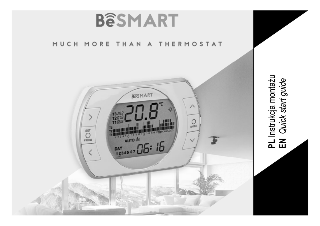 PL Instrukccja monttażu EN Quick start guiide 1 Instalacja w 3 krokach Installation is done in 3 steps p A Zamontować programator Install the BeSMART thermostat B C Zainstalować modem Wi-Fi Install the wifi box Pobrać aplikację BeSMART Download the BeSMART APP 2 Przygotowanie Preparation p Przed instalacją • Upewnić p się, ę że programator p g jjest kompatybilny p y y z kotłem. W tym y celu zapoznać p sięę z instrukcją ją obsługi g kotła. • Bezprzewodowy programator BeSMART można zainstalować praktycznie w każdym miejscu, korzystając ze wskazówek znajdujących się na schematach obok. • Programator BeSMART można również zainstalować przy użyciu przewodów, jako zamiennik prawie każdego dostępnego na rynku programatora. W takim wypadku należy sprawdzić kompatybilność z kotłem (patrz instrukcja montażu). • Przed przystąpieniem do montażu należy odłączyć główne źródło zasilania kotła. Podczas instalacji Zachodzi konieczność użycia następujących narzędzi: • Wkrętak krzyżakowy • Mały wkrętak płaski • Szczypce oraz szczypce do przewodów Unikać miejsc narażonych na przeciągi. Avoid draughty areas Nie instalować nad źródłami ciepła Do not install above heat sources Before installation • Refer R f to t the th appliance li manuall to t ensure that th t the th BeSMART B SMART thermostat th t t iis compatible tibl with ith your boiler • The BeSMART wireless thermostat can be installed almost everywhere within the home, however please refer to the adjacent diagrams for guidance when deciding on a suitable location. • The BeSMART thermostat can also be used to replace an existing hard-wired thermostat (please check appliance manual to ensure compatibility). compatibility) • Switch off and isolate the appliance and any external controls from the electrical supply, before carrying out the installation. Tools required for the installation • Phillips screwdriver • Small flat blade screwdriver • Combination pliers Unikać bezpośredniego działania promieni słonecznych Avoid direct sunlight Zainstalować, zachowując odpowiednią wysokość Install at the correct height 3 A Instalacja programatora BeSMART BeSMART Installation Jeśli zachodzi taka konieczność, należy zdemontować poprzedni programator. programator If necessary remove the old thermostat. Zdjąć tylną część obudowy programatora BeSMART. Separate the BeSMART from the wall plate. plate Uwaga: nie ma potrzeby podłączania programatora BeSMART za pomocą przewodów, ponieważ może pracować jako urządzenie bezprzewodowe. bezprzewodowe W takim przypadku należy odpowiednio zaizolować kable. W przypadku instalacji przewodowej należy upewnić się, że jest ona możliwa i zgodna z instrukcją, po czym można kontynuować podłączenie. tte t o Thee BeSMART eS thermostat e os a iss a wireless e ess co control. o Attention: Isolate any redundant wiring and ensure it does not interfere with the fitment of the BeSMART control. If its intended to re-use any existing wiring; you should refer to the appliance manual to ensure compatibility . Tylną część obudowy należy zamontować na ścianie za pomocą dostarczonych śrub. (główka śruby we właściwym położeniu) Fix the wall plate to the wall using the supplied screws. Jeżeli stosuje się programator w wersji przewodowej, przewodowej należy podłączyć odpowiednie przewody do właściwych zacisków na sterowniku BeSMART. If using as a hard-wired control; connect the respective wiring to the relevant terminals on the BeSMART control. control Uwaga: Aby podłączyć programator przewodowo, należy zapoznać się zarówno z instrukcją sterownika, jak i instrukcją kotła. Attention: Please refer to the appliance installation manual and the BeSMART manual for specific information on hard-wired connections. TA ON/OFF 4 A Instalacja programatora BeSMART BeSMART Installation Umieścić dwie baterie AA (na wyposażeniu) w odpowiednim miejscu w programatorze. Insert two ‘AA’ type batteries (supplied), into the battery compartment . Uwaga: umieścić baterie, zachowując zalecaną biegunowość. Attention: insert the batteries, observing the correct polarity as indicated. Zamocować pprogramator g BeSMART na tylnej y j obudowie (umieszczonej na ścianie), lekko dociskając narożniki w celu zatrzaśnięcia Re-attach the BeSMART thermostat to the wall plate by aligning and then ppressingg firmlyy around the outer edges. g 5 B Instalacja modemu Wi-Fi Wi-Fi Box Installation W przypadku instalacji programatora bezprzewodowego BeSmart, należy podłączyć (dostarczony) przewód USB WiFi Box do złącza OT-Bus (dot. niektórych kotłów), kotłów) lub do termostatu pokojowego kotła (TA lub ON/OFF). ON/OFF) Case installation BeSMART wireless, connect the (supplied) USB WiFi Box cable to the boiler OT-Bus connection (for specific boilers) or to the boiler room thermostat connection (TA or ON/OFF). USB TA = nero/Black/czarny OT = rosso/red/czerwony Uwaga: aby uzyskać informacje na temat podłączeń elektrycznych i danych technicznych należy zapoznać się z instrukcją instalacji. technicznych, instalacji (Moduł OT jest na wyposażniu). Attention: for the electrical connection and the technical specifications, please refer to the installation manual. (OT PCB plug supplied as standard) Przy pomocy przewodu USB i zasilacza (na wyposażeniu) podłączyć modem Wi-Fi do złącza źródła zasilania. Using the mini USB cable and power adaptor (supplied); connect the Wi-Fi box to an adjacent electrical socket . USB Outputs/Boiler W przypadku instalacji programatora w wersji bezprzewodowej, należy włożyć drugi koniec przewodu USB do złącza OUTPUTS/BOILER modemu WiFi. In case of wireless installation, insert the other end of the USB cable into the OUTPUTS/BOILER socket of the WiFi Box Zamocować modem Wi-Fi na metalowej obudowie kotła pprzyy użyciu y magnesu g znajdującego j ją g sięę w t