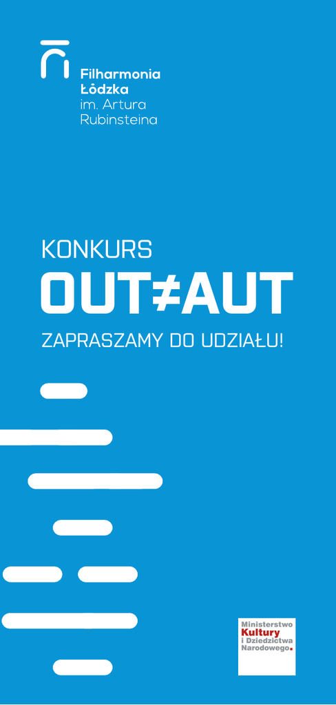 Konkurs OUT≠AUT Zapraszamy do udziału! NIEBIESKI BILET, zakupiony przez, dla, o której, gdzie (wykropkowania) i strona z regulaminem. Ostatnia – stopka i info o FŁ. Niestety, na szybko… Konkurs OUT≠AUT Konkurs jest ogłoszony w ramach projektu „Niebieski Dzień” w Filharmonii Łódzkiej im. A. Rubinsteina, mającego na celu przeciwdziałanie wykluczeniu z życia kulturalnego osób dysfunkcyjnych, ze szczególnym uwzględnieniem osób autystycznych i ich rodzin. Przedmiotem konkursu jest stworzenie konspektu wydarzenia muzycznego o charakterze integracyjnym dla rodzin z dziećmi zdrowymi i niepełnosprawnymi. Regulamin Konkursu OUT≠AUT 1. Organizatorem konkursu jest Filharmonia Łódzka im. A. Rubinsteina w Łodzi, przy wsparciu finansowym Ministerstwa Kultury i Dziedzictwa Narodowego. 2. Przedmiotem konkursu jest stworzenie scenariusza integracyjnego koncertu lub warsztatu muzycznego dla rodzin z dziećmi. 3. Do konkursu mogą przystąpić studenci kierunków artystycznych, pedagogicznych i terapeutycznych. 4. Konspekt powinien zakładać czas trwania wydarzenia (koncertu bądź warsztatu) 60 minut i jako miejsce realizacji przewidywać przestrzeń budynku FŁ. 5. Scenariusz należy dostarczyć do 14 maja 2015 w formie elektronicznej pod adresem: [email protected] lub pocztą: Filharmonia Łódzka im. A. Rubinsteina, ul. Narutowicza 20/22, 90-135 Łódź, wraz z danymi uczestnika. 6. Oceny konspektów dokona specjalnie powołana komisja. 7. Informacja o rozstrzygnięciu konkursu będzie dostępna na stronie internetowej: www.filharmonia.lodz.pl 16 maja 2015, ponadto uczestnicy zostaną poinformowani o wynikach drogą e-mailową. 8. Nagrodą główną jest 1000 zł oraz realizacja wydarzenia w dniu 1 czerwca 2015 r. w budynku Filharmonii Łódzkiej. Dodatkowe informacje można uzyskać od koordynatora akcji p. Dominiki Jakubowskiej: [email protected] +48 42 664 79 97, 603 290 096 Projekt dofinansowany ze środków Ministra Kultury i Dziedzictwa Narodowego