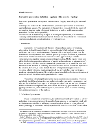 1 Marek Palczewski Journalistic provocation. Definition