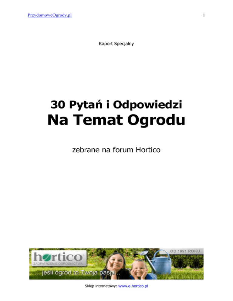 PrzydomoweOgrody.pl 1 Raport Specjalny 30 Pytań i Odpowiedzi Na Temat Ogrodu zebrane na forum Hortico Sklep internetowy: www.e-hortico.pl PrzydomoweOgrody.pl 2 Środki ochrony roślin Zaczynam raczkować w temacie chemii, proszę o wszelkie info: szczególinie chodzi mi o nowości które stosuje się w uprawach szklarniowych (przedzior, szarucha itp.) W przypadku szarej pleśni w tym roku pojawiły się dwa preparaty (obydwa zarejestrowane w uprawie pomidora): Switch 62,5WG i Signum 33WG. W grupie akarycydów pojawił się Pennstyl 600SC (rośliny ozdobne). W temacie upraw szklarniowych nie zanosi się na wprowadzenie nowych preparatów. Nornica zimowa Nie miałem dotychczas z tym problemów ale potrzebowałbym informacji na temat zwalczania nornic. W ostatnim okresie zwłaszcza jak jest zimniej , znalazłem ogryzione zamarznięte korzenie drzewek owocowych w szczególności w okolicach przyziemia, czyli tam gdzie jest bardziej zamarznięte. Prawdopodobnie mamy do czynienia z karczownikiem ziemnowodnym. W ostatnich latach nastąpił wzrost populacji tego szkodnika z racji tego, że często mylony był z nornicą. Obecnie proponuję zastosowanie jednego z środków: Normix AT, Norat GR, Anorin FK (świece) lub Polytanol GR. W przypadku tego ostatniego wymagane jest posiadanie świadectwa lub zaświadczenia na zakup i używanie środków toksycznych i bardzo toksycznych. Opryski czy jednak podlewanie? Ostatnio zauważyłam preparaty nie tylko do opryskiwania, ale również do podlewania roślin. Który z tych sposobów jest skuteczniejszy? Nie ma reguły czy podlewanie czy oprysk daje lepsze efekty. Wszystko zależy od gatunku ochranianej rośliny, choroby lub szkodnika. Zalecany na etykiecie preparatu sposób użycia wskazuje najlepszy sposób uzycia ś.o.r. Sklep internetowy: www.e-hortico.pl PrzydomoweOgrody.pl 3 Piriflor a Pirimor w aerozolu... Dawniej sprzedawany Pirimor w aerozolu to dokładnie to samo co sprzedawany aktualnie Piriflor w aerozolu? Pirimor na róże działał super! Piriflor AE to dokładnie ten sam preparat co dawny Pirimor AE. Działa równie dobrze jak poprzednik. Jest też coś nowszego i bardziej skutecznego np.: Mospilan albo Polecam Pirimix z BestPestu. W większej puszce a w niższej cenie. Preparaty zawierają tą samą substancję czynną i działają równie skutecznie. Turkuć podjadek Na działce co roku mam turkucia podjadka. Jest podobno preparat na ślimaki, który to zwalcza. Czy to prawda i jeśli jest to jaki? Właściwości takie przypisywane są preparatowi Mesurol Schneckenchorn. Przypominam jednak, że produkt należy używać zgodnie z zleceniami podanymi na etykiecie. Preparat zgodnie z zaleceniami stosuje się na ślimaki posypując po wierzchu ziemi w dawce 3g na 10 m kw. Stosowanie gibrescolu Czy mógłby mi ktoś udzielić informacji jakie stężenie Gibrescolu będzie najlepiej działało na ziarna zbóż (pszenica, owies, żyto...)? Czy może ktoś wie gdzie mogę go kupić? Gibrescol 10MG jest zarejestrowany w uprawach roślin ozdobnych i pomidorach. Nie mam informacji, czy czyniono próby tym preparatem w zbożach i w jakich dawkach. Jednocześnie przypominam, że środki ochrony roślin w tym regulatory wzrostu stosujemy zgodnie z rejestracją. Preparat Gibrescol 10MG znajduje się w ofercie Hortico. W obecnej chwili posiadamy gramatury 22,5g oraz 250g. Preparat można zakupić w jednym z oddziałów Hortico. Nasze lokalizacje: giełda warzywna przy ulicy Obornickiej 235 lub giełda kwiatowa przy ulicy Karmelkowej 41. Preparat można też zamówić w sklepie internetowym lub telefonicznie pod nr telefonu 693 372 139. Sklep internetowy: www.e-hortico.pl PrzydomoweOgrody.pl 4 Kupiłem u was Gibreskol 10 mg. Proszę mi napisać ile saszetek wsypać na litr wody i jak najlepiej dozować, chodzi o kwiaty. Proszę napisać jakie kwiaty. Pytam ze względu na bardzo dużą rozbieżność w dawkach. Miskant olbrzymi - zwalczanie chwastów Posadziłem miskant olbrzymiego. Jednak wraz z nim jest dużo rumianu, lebiody, perzu i skrzypu. Jak się tego pozbyć? Jaki herbicyd zastosować, by nie zniszczyć miskanta? Miskant olbrzymi jest rośliną jednoliścienną więc z pewnością dobrze zadziałają takie preparaty jak Starane lub Bofix. Pierwszy zabieg zalecałbym wykonać ok. 3 miesiące po posadzeniu. Proszę pamiętać, ze miskant będzie przykrywał część chwastów stąd proszę zwrócić uwagę na staranność zabiegu. W przypadku perzu o ile jest to możliwe zalecane jest usunięcie mechaniczne. Sosna choruje? Na igłach mojej sosny pojawiły się plamki w formie czarnych kresek. Drzewo rośnie słabiej. Co robić? Z pewnością jest choroba grzybowa o nazwie osutka sosny. Do jej zwalczania zarejestrowane są trzy preparaty: Antracol 70WG, Dithane M45 80WP oraz Penncozeb 80WP. W przypadku dużego porażenia zalecałbym Antracol 70WG. Szczury w mojej piwnicy jedzą coraz więcej, co mam robić? Od kilku dni "karmię" szczury w mojej piwnicy chlebem nasączonym w Toxanoxie, i od kilku kromek doszedłem do kilku bochenków co 2 dni... Jak długo powinienem je „karmić” = „truc” ? ... w końcu nie wiem czy je dokarmiam czy truje? Istnieje duże prawdopodobieństwo, ze gryzonie uodporniły się na podawaną truciznę. Proponuję zastosować pastę Toxan W lub Szczur Stop. Truciznę należy wykładać w niewielkich porcjach. Proszę pamiętać o częstej zmianie wykładanych trutek ze względu na łatwość uodparniania się szczurów na podawane trucizny. Sklep internetowy: www.e-hortico.pl PrzydomoweOgrody.pl 5 Czy pies zje trutkę na szczury? Czy istnieje ryzyko że mój pies (jamnik, 8m-cy) zje wyłożona na klatce trutke na szczury. Trutka jest co prawda w czarnych plastikowych pudełakach, ale boję się czy nie wsadzi do nich języka i nie będzie lizał? Przymocowanie karmnika wraz z trutką daje gwarancję nie pobierania pokarmu psa. Proponuję zatem solidne przymocowanie karmnika do posadzki lub ściany. Proszę pamiętać