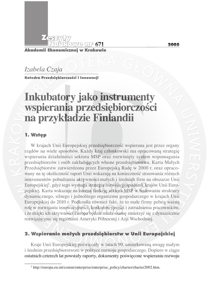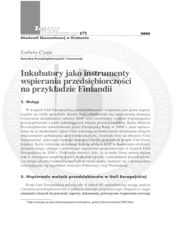 Inkubatory jako instrumenty wspierania przedsi´biorczoĘci na przyk