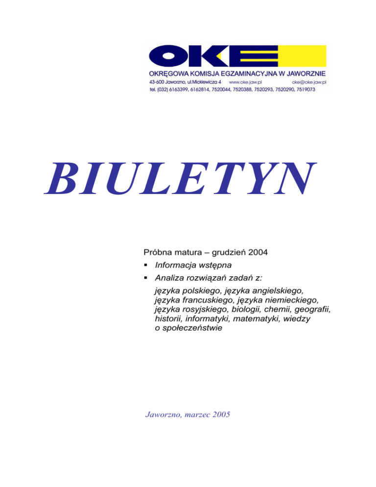 Biuletyn - Próbna matura 2004 - analiza rozwiązań