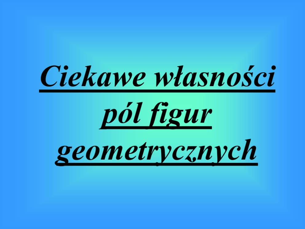Ciekawe własności pól figur geometrycznych W mojej pracy zajęłam się wykazywaniem faktów, że pola pewnych figur spełniają określone warunki. Większość z tych dowodów można było przeprowadzić metodami prawie „obrazkowymi” tzn. nie wymagały one żmudnych obliczeń. Część zadań zaczerpnęłam z „miniatur matematycznych…”, druga część jest moim własnym rozwinięciem danych problemów. Zadanie 1 W prostokącie ABCD punkt M jest dowolnym punktem przekątnej AC. Uzasadnię, że pole prostokąta pokolorowanego na zielono jest równe niebieskiemu. Widzimy, że na prawo od prostokąta MM2DM1 inny prostokąt, MM3CM2, który dzieli przekątna MC na dwa trójkąty przystające. Ta przekątna jest częścią przekątnej AC. Druga część AC dzieli AM4MM1 na trójkąty przystające AM4M i AMM1. Zauważmy, że po różnych stronach AC są położone pokolorowane figury. Jedna w trójkącie ABC, druga w ADC. Biorąc pod uwagę fakt, że w obu trójkątach jest połowa prostokąta MM3CM2, i AM4MM1 z przekątną AM, jedynymi figurami zastają czworokąt niebieski i zielony. Czyli: PM1MM2D = PACD -PMCM2-PAMM1 PMM4BM3= PABC -PAM4M- PMM3C A ponieważ: ACD= ABC, AMM1=AM4M i MCM2=MM3C To PM1MM2D= PMM4BM3 Co należało dowieść. Zadanie 2 Kwadrat KLMN ma boki równoległe do boków kwadratu ABCD. Udowodnię, że pole obszaru niebieskiego równa się polu pomarańczowego obszaru. Każdy z trapezów ma pewne wspólne wielkości potrzebne do obliczenia pola. Podstawy- jedna wynosi x, a druga y. Suma wysokości trapezów AKND i BCML jest równa h1 + h2= x-y. Analogicznie dla trapezów ABLK i NMKD wysokość to h1 + h2= x-y. (x y )h1 2 (x y) 2 (x y) 2 (x (x (h1 h2 ) (x y) (x y )h2 2 y )h3 2 y) 2 (x y) 2 (x (x y )h4 2 (h3 h4 ) y) Tak więc wykazałam, że pole obszaru niebieskiego równa się pomarańczowemu. Zadanie 3 Analogicznie zadanie 2 można sformułować dla sześciokątów foremnych o bokach odpowiednio równoległych Oznaczmy odpowiednio przez „x” i przez „y” boki większego i mniejszego z sześciokątów foremnych, a przez „c” i „d” prostopadłe odcinki łączące przeciwległe boki w dużym i małym sześciokącie: 1 (x 2 PAGLF+ PCDJI= Ale h6+h3= c-d więc 1 (x (*)= 2 y )h6 1 (x 2 y )h3 1 (x 2 y )(c d ) Tak samo można pokazać, że 1 PBCIH + PEFLK= (x i PABHG +PDEKJ= 2 1 (x 2 y )(c d ) y )(c d ) Czyli pola wszystkich tych obszarów są równe. y )(h6 h3 ) (*) Zadanie 4 Dane są cztery koła o średnicach 6,4,4,2. Udowodnię, że pole obszaru czerwonego równa się zielonemu Pole koła o średnicy 6: P= r2 P (6 : 2)2 P 32 P 9 Pole koła o średnicy 4: P 22 P 4 Pole koła o średnicy 2: P 12 P 9 4 4 Pole koła o średnicy 6 równa się sumie pól pozostałych kół, a że kiędy figura zaczyna zachodzić na inną figurę, pola obu tracą po tyle samo. Tak więc obszar zielony równa się czerwonemu. Nie każde cztery koła o dowolnych średnicach mają taką własność. Jaki warunek zatem muszą spełniać ich średnice? P1=P2+P3+P4 – dla kół (r1 )2 (r2 )2 (r3 )2 (r4 )2 (r1 )2 (r2 )2 (r3 )2 (r4 )2 r1 d1 2 a poniważ : d d d d to: ( 1 ) 2 ( 2 ) 2 ( 3 ) 2 ( 4 ) 2 (d1 )2 4 d12 2 (d 2 ) 2 4 2 ( d3 ) 2 4 2 (d 4 ) 2 4 2 / :4 d 2 2 d3 2 d 4 2 Sprawdzę czy średnice w zad. 4 spełniają ten warunek: 62 42 42 22 36 16 16 4 36 36 Widać, że jeśli chcemy, aby liczby te były naturalne to mogą one mieć postać 3n, 2n, 2n, n gdzie n jest dowolną liczbą naturalną dodatnią, bo: (3n) 2 (2n) 2 (2n) 2 n 2 /n 2 9n 2 4n 2 4n 2 n 2 9 4 4 1 9 9 Jeśli chodzi o trójki liczb naturalnych( czyli duże koło mające niepustą część wspólną z dwoma mniejszymi), to na pewno mogą nimi być boki trójkątów pitagorejskich, np: 3,4,5 5,12,13 8,15,17 6,8,10 10,24,26 16,30,34 Korzystając ze sposobu wyznaczenia trójek pitagorejskich: a n2 k 2 b 2nk c n2 k 2 Gdzie n i k są naturalne i n jest większe od k. Tą metodą można znaleźć wszystkie serie tych trójek. Zadanie 5 Wcześniej podane warunki mogą spełniać inne figury niż koło. Dane są trójkąty o podstawach 12, 6, 6. Udowodnię, że obszar różowy równa się brązowemu, biorąc pod uwagę, że wszystkie trójkąty mają wysokość 2. P 6 2:2 P=6 P 12 2 : 2 P=12 12 j 2 6 j2 6 j2 Pole dużego trójkąta równa się dwóm małym, a jeżeli jakaś figura zachodzi na inną, tracą po tyle samo. Stąd wiemy, że obszar różowy równa się brązowemu. Oczywiście te trójkąty nie muszą mieć jednakowych wysokości. P1 P2 P3 1 ah1 2 1 bh2 2 1 ch3 2 /*2 ah1 bh2 ch3 Trzeba tak dobrać podstawy i wysokości aby był spełniony powyższy warunek dla boków trzech trójkątów a, b, c oraz h1, h2, h3 odpowiednio padających na te boki. Np. a=8 i h1=3 b=7 i h2=2 c=10 i h3=1 Zadanie 6 Wykażę, że spośród wszystkich prostokątów o obwodzie 2p, największe pole ma kwadrat. Pole kwadratu o obwodzie 2p: p p 2 2 p 4 1 2 p 4 Pole prostokąta o obwodzie 2p: p ( 2 p x)( 2 x) 1 2 p 4 p x 2 p x x2 2 1 2 p 4 x2 Dla każdej wartości x większej od 0, pole kwadratu będzie większe od prostokąta. Mam nadzieje, że moja praca wzbudziła wasze zainteresowanie dowodami przeprowadzonymi „na obrazkach” i zacheci Was do dalszych poszukiwań takich zadań i ich uogólnień. Bibliografia • „Miniatury matematyczne dla szkół gimnazjalnych dla szkół gimnazjalnych” zeszyt 16, wydawnictwo”Aksjomat” Toruń • „Matematyka 2, podręcznik do gimnazjum”, praca zbiorowa pod redakcją M.Dobrowolskiej, Gdańskie wydawnictwo Oświatowe.