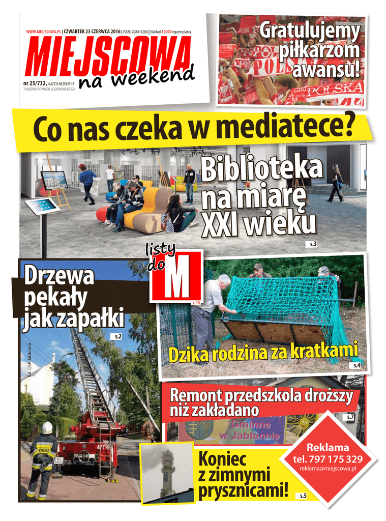 Gratulujemy piłkarzom awansu! WWW.MIEJSCOWA.PL | CZWARTEK 23 CZERWCA 2016 | ISSN: 2084-5286 | Nakład 10000 egzemplarzy nr 25/732, GAZETA BEZPŁATNA TYGODNIK POWIATU LEGIONOWSKIEGO Co nas czeka w mediatece? Biblioteka na miarę XXI wieku s.3 Drzewa pękały jak zapałki fot. OSP Jabłonna s.2 s. 10 i m a tk ra k a z a in z d ro a Dzik s.4 Remont przedszkola droższy niż zakładano s.7 Koniec z zimnymi prysznicami! Reklama tel. 797 175 329 [email protected] s.5 2 TYDZIEŃ NA SYGNALE CZWARTEK, 23 czerwca 2016 MIEJSCOWA na weekend, [email protected] Drzewa pękały jak zapałki Kiedy słyszę zapowiedzi IMiGW dotyczące gwałtownych wichur, staram się stawiać samochód daleko od drzew i słupów energetycznych. bryg. Arkadiusz Pich zastępca komendanta KP PSP w Legionowie Gdyby chodziło o piątek trzynastego, łatwiej byłoby zrozumieć urwanie głowy powiatowych strażaków. Tyle że mowa akurat o siedemnastym czerwca – dniu, w którym burze i porywiste wiatry zniszczyły kilkadziesiąt drzew, a zarazem nadzieje ratowników na spokojną służbę. Do sprokurowanych przez naturę zdarzeń strażacy z całego powiatu wyjeżdżali ponad sto razy. Dla porównania, w całym półroczu wszystkich interwencji mieli około siedmiuset. - Te piętnaście minut wichury i deszczu spowodowało w efekcie bardzo dużą liczbę połamanych drzew i konarów. Przede wszystkim wysyłaliśmy zastępy ratowniczo-gaśnicze tam, gdzie drzewa były oparte na liniach energetycznych albo na dachach budynków. Mniej groźne przypadki musieliśmy niestety odkładać na później przyznaje bryg. Arkadiusz Pich, zastępca komendanta KP PSP w Legionowie. W pewnym momencie telefony na komendzie rozgrzały się tak mocno, że konieczne było zwiększenie obsady stanowiska kierowania. Jeden oficer dyżurny po prostu nie nadążał z przyjmowaniem zgłoszeń. A to oznaczało, że jego kolegom po fachu – zawodowcom i ochotnikom – robota będzie musiała palić się w rękach. -Nasza jednostka ratowniczo-gaśnicza jeździła praktycznie na okrągło. Ale oprócz tego w akcji było piętnaście jednostek Ochotniczych Straży Pożarnych, z czego jedenaście jest w Krajowym Systemie Ratowniczo-Gaśniczym. Dobrze, że mamy tutaj podnośnik, ponieważ nie wszystkie drzewa dawało się wyciąć z poziomu ziemi - dodaje brygadier Pich. Swoją niszczącą siłę szalejący wiatr pokazał w całym powiecie. Nie oszczędzając rzecz jasna również jego stolicy. - Na terenie osiedla Sobieskiego skutkowało to przewróceniem kilkunastu drzew. Na szczęście nic one poważnie nie uszkodziły, nie stanowiły też zagrożenia dla życia i mienia. No ale oczywiście trzeba je było usunąć - relacjonuje Monika Osińska-Gołaś, kierownik adm. os. Sobieskiego. W piątkowym natłoku interwencji strażakom przytrafiały się też czasem zaskakujące sytuacje. Takie, przez które uszkodzone drzewa musieli odłożyć na bok. - Chodzi m.in. o zdarzenie, gdzie zastęp pojechał do usuwania połamanego drzewa, a przy okazji znalazł człowieka, który poraniony wy- szedł z Zalewu Zegrzyńskiego, prawdopodobnie na nadepnięciu na jakieś szkło lub puszkę. I najpierw udzielono mu pomocy, bo wiadomo, że ludzkie zdrowie jest ważniejsze od jakichś zagrożeń mienia - mówi wiceszef powiatowych strażaków. Tak czy owak, i o jedno, i o drugie należy dbać. Dlatego słysząc prognozy wieszczące nadejście wichury, warto się na jej spotkanie przygotować. Mundurowi radzą głównie zamknięcie okien i uprzątnięcie balkonów. Kierowcy powinni zaś rozważyć zaparkowanie pojazdu z dala od elementów mogących ulec przewróceniu. Waldek Siwczyński Fajki z przemytu Palenie szkodzi Legionowo Alarm w Centrum Komunikacyjnym Prawie dwa tysiące paczek papierosów bez polskich znaków akcyzy zabezpieczyli w ubiegłym tygodniu policjanci z Wydziału do Walki z Przestępczością Gospodarczą legionowskiej komendy. Papierosy miał przy sobie 63-letni mieszkaniec Legionowa, Tadeusz F. Funkcjonariusze otrzymali informację, że mężczyzna może zajmować się handlem papierosami pochodzącymi najprawdopodobniej z przemytu. W ubiegłą sobotę około godziny 8.00 rano policjanci zjawili się pod jego domem. Kiedy Ta- foto. „Jabłonna Dla Mieszkańców” Rajszew deusz F. wyszedł z bloku, miał przy sobie torby zapakowane po brzegi wyrobami tytoniowymi. Podczas kontroli funkcjonariusze ujawnili w nich 1748 sztuk paczek papierosów różnych marek bez polskich znaków akcyzy skarbowej. Jak ustalili funkcjonariusze, na procederze 63-latka skarb państwa został uszczuplony o przeszło 38 tysięcy złotych. Tadeuszowi F. grozi grzywna i przepadek mienia. Policjanci nie wykluczają w tej sprawie zarzutów i dla innych osób. Zig W czwartek przed godziną 8.00 legionowska straż pożarna została postawiona na równe nogi. W wykańczanym właśnie budynku Centrum Komunikacyjnego uruchomił się alarm przeciwpożarowy. Po przybyciu na miejsce dwóch zastępów straży pożarnej okazało się, że alarm był na szczęście fałszywy. Jeden z pracowników firmy prowadzącej roboty wykończeniowe we wnętrzu dworca, nie wiedząc, że czujki dymu już działają, zapalił sobie w ich pobliżu papierosa. Poranny „dymek” spowodował załą- Uderzył w drzewo Do groźnie wyglądającego wypadku doszło we wtorek (21 czerwca) około godz. 20.00 na DW 630 w miejscowości Rajszew. Z niewyjaśnionych przyczyn samochód osobowy ford Ka zjechał z drogi i uderzył w przydrożne drzewo. Na miejsce zdarzenia zadysponowano zastępy PSP z Nowego Dworu Mazowieckiego i Legionowa, zastęp OSP Jabłonna oraz pogotowie ratunkowe i policję. Kierującego pojazdem, po wydostaniu z rozbitego pojazdu, przetransportowano do szpitala. info. OSP Jabłonna, KRUBIN czenie alarmu, a to doprowadziło do interwencji strażaków. Cóż, przynajmniej sprawdzono skuteczność systemu przeciwpożarowego Centrum Komunikacyjnego. red. Tydzień na sygnale W weekend wpadło trzech posz