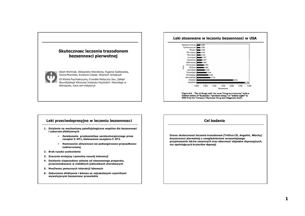 Skuteczność leczenia trazodonem bezsenności pierwotnej