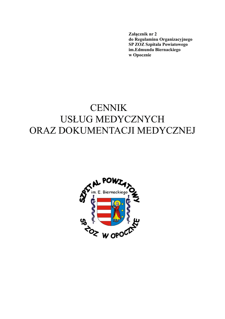 CENNIK USŁUG MEDYCZNYCH ORAZ DOKUMENTACJI