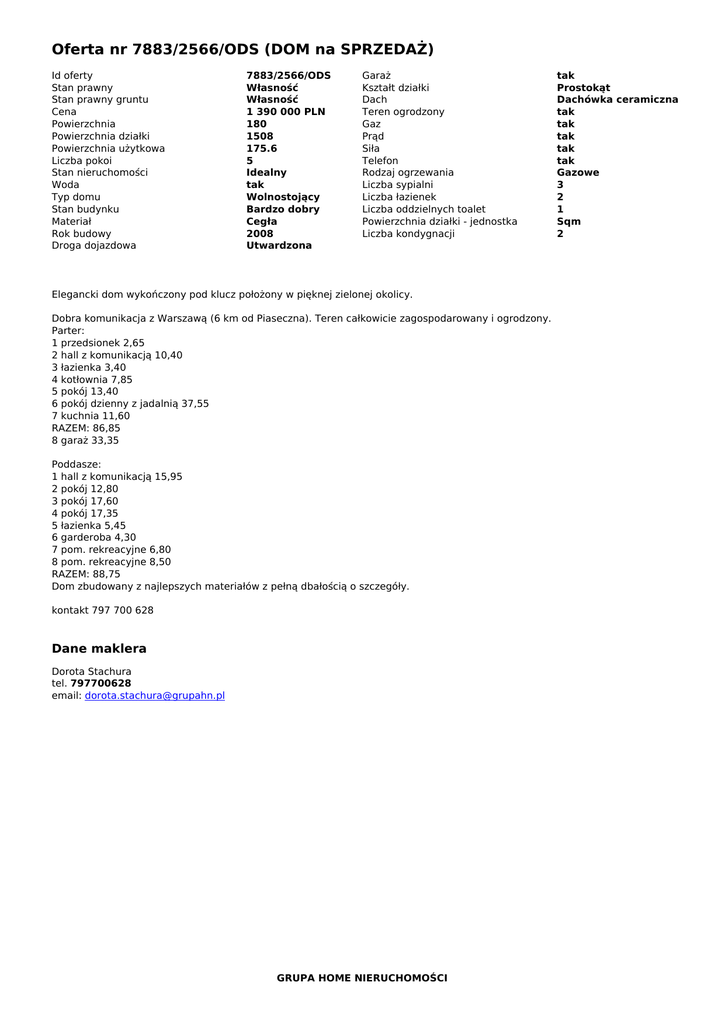 Oferta nr 7883/2566/ODS (DOM na SPRZEDAŻ)