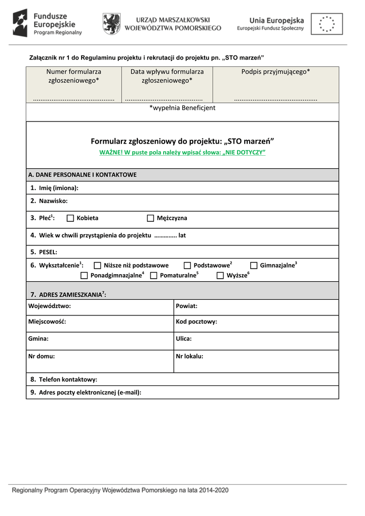 Formularz zgłoszeniowy do projektu