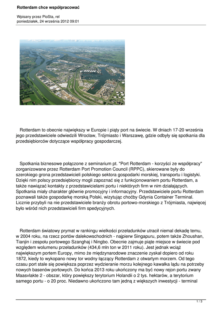 Rotterdam to obecnie największy w Europie i piąty port na świecie. W dniach 17-20 września