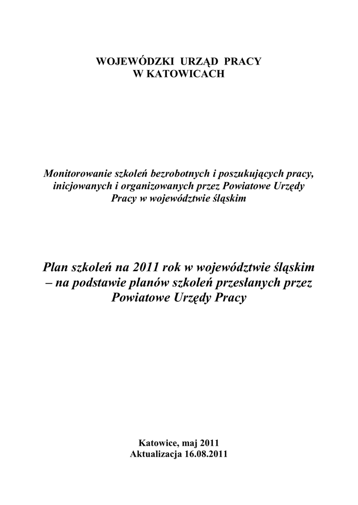stan na 16 .08.2011 - Wojewódzki Urząd Pracy w Katowicach
